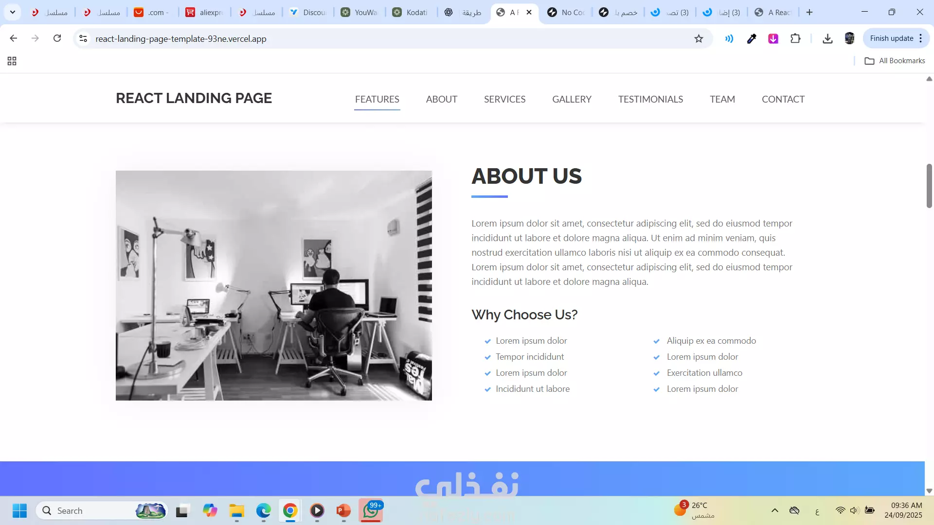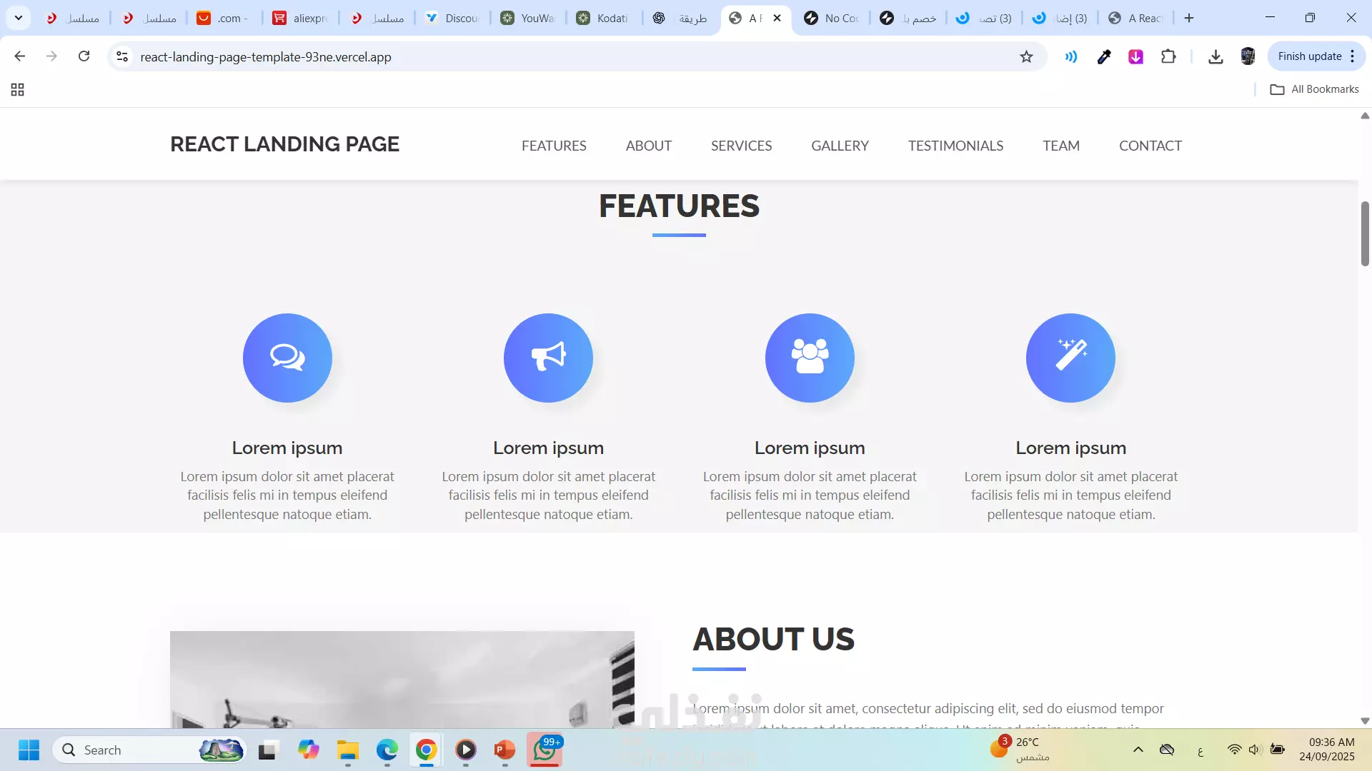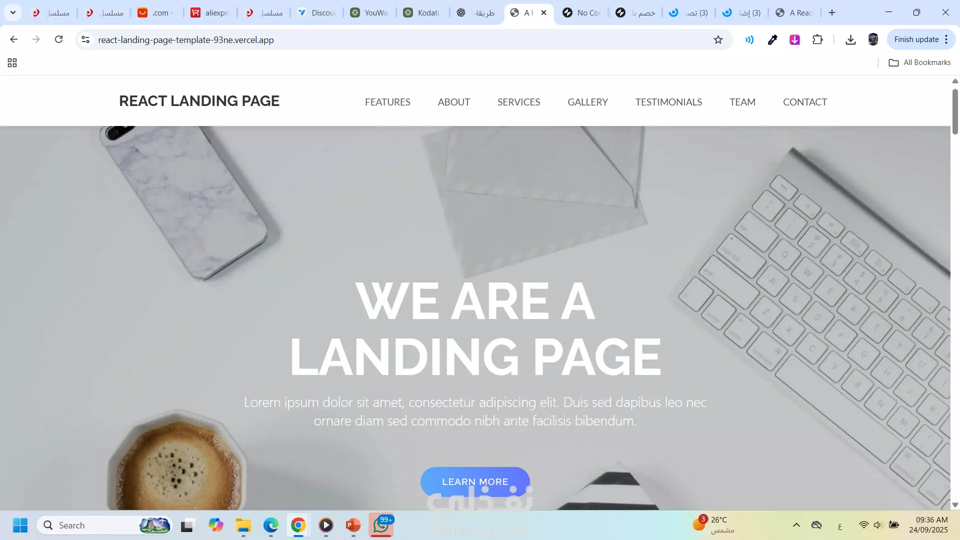 صفحة هبوط مبسطة بReact لعرض شركة أو منتج React, JavaScript