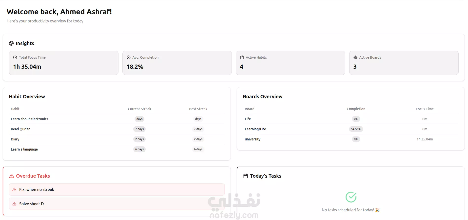 يعمل على كل الأجهزة — سواء موبايل أو كمبيوتر — مع مزامنة تامة للمهام والعادات.