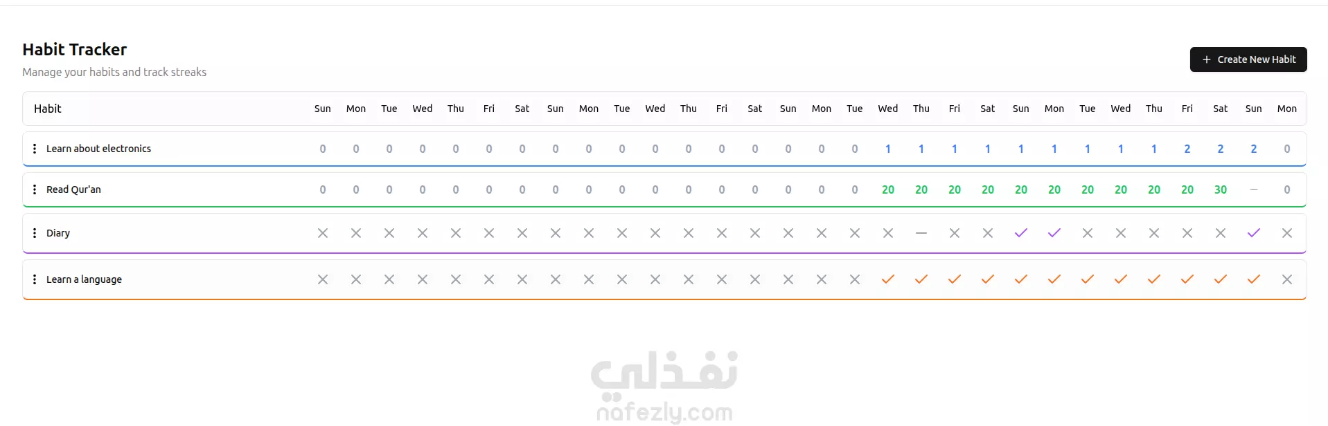 • تتبّع العادات بشكل واضح وتقدّم تحفيزي.