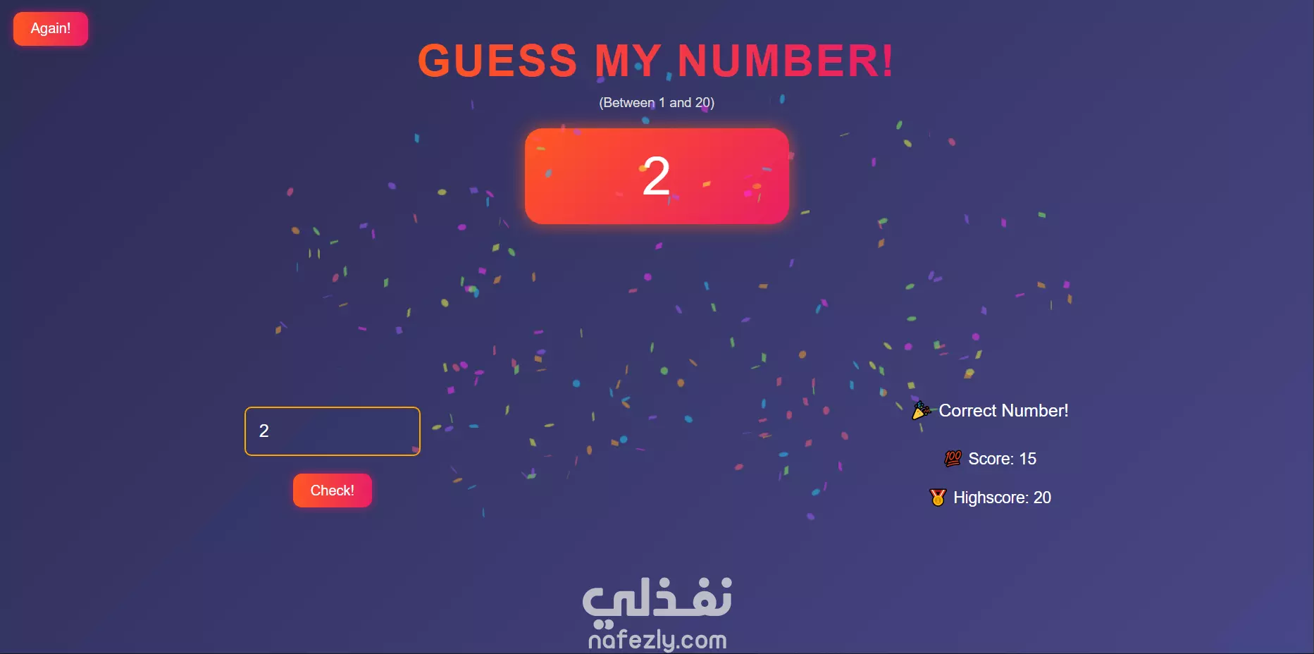 يقوم الحاسوب باختيار رقم عشوائي بين 1 و 20، وعلى اللاعب محاولة تخمين هذا الرقم. عند إدخال رقم غير صحيح، يظهر تنبيه بأن الرقم أكبر أو أصغر من المطلوب مع إنقاص درجة من الرصيد. إذا وصل اللاعب للرقم الصحيح، تتغير الخلفية ويظهر احتفال ، كما يتم تسجيل أعلى نتيجة حققها اللاعب. إذا انتهت المحاولات يخسر اللاعب وتظهر رسالة بالخسارة. يمكن الضغط على زر Again لإعادة اللعبة من البداية.
