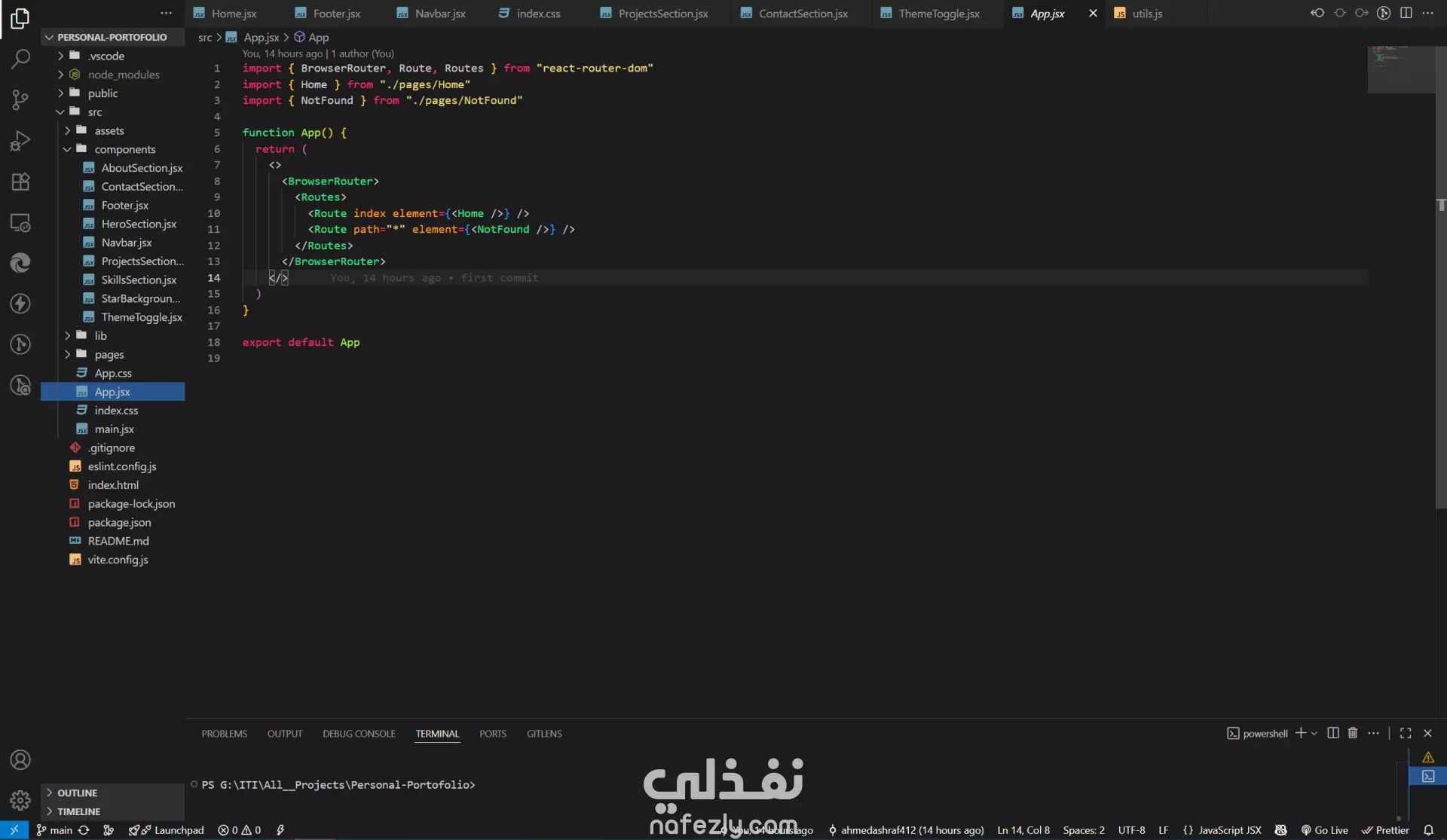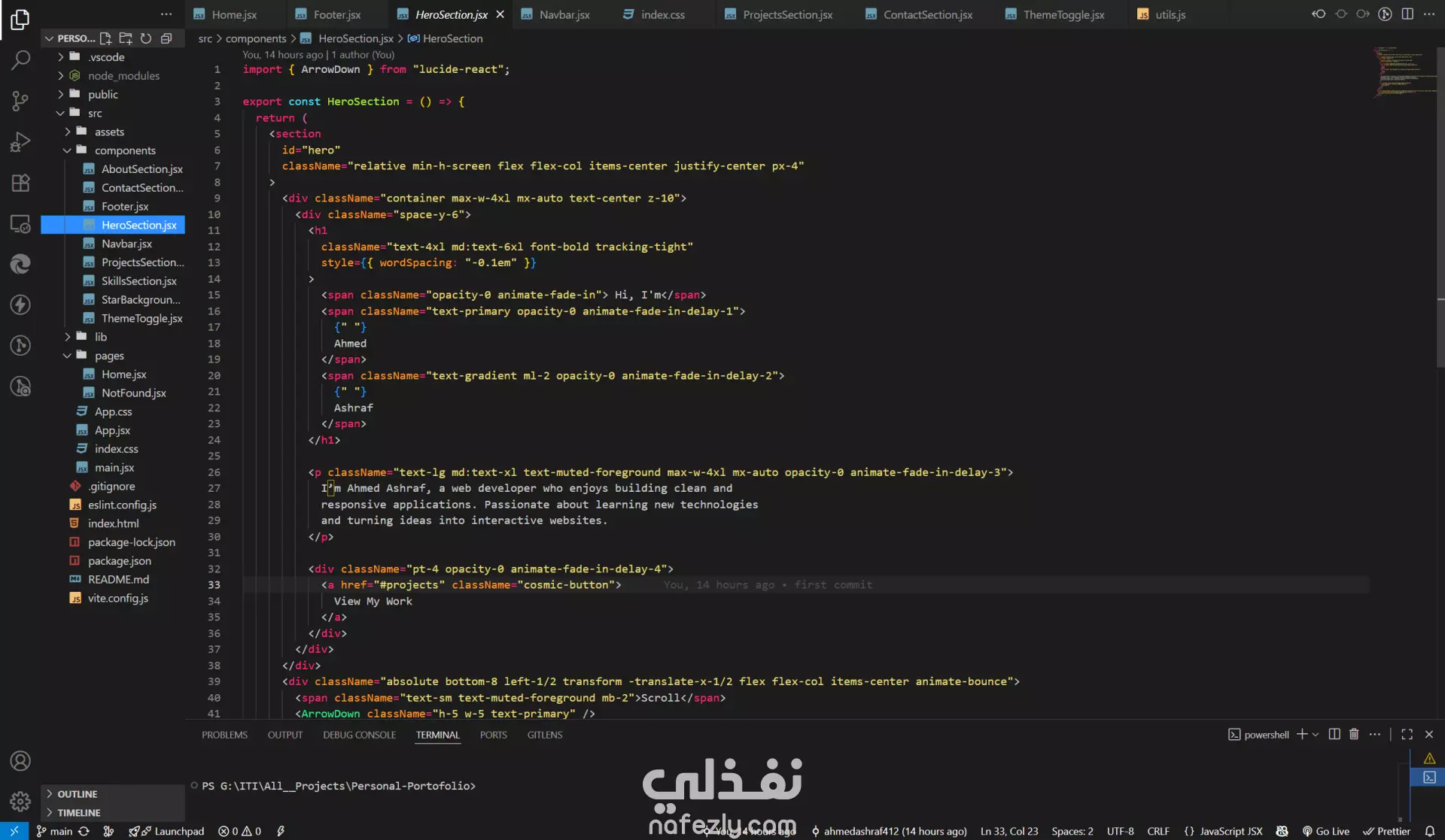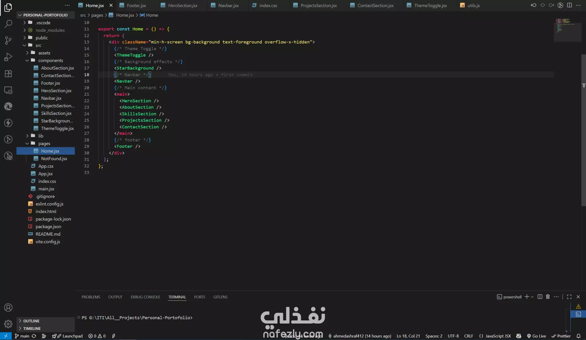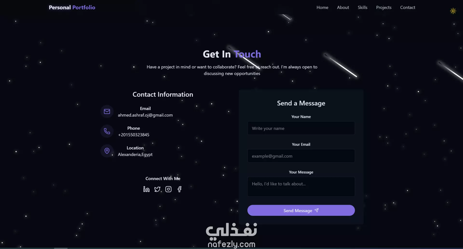 أنا قمت بتطوير موقع بورتفوليو شخصي باستخدام React JS وTailwind CSS، وهو مصمم ليكون واجهة عرض مثالية لمهاراتك ومشاريعك، بطريقة أنيقة، مرنة، وسريعة التحميل. إليك أبرز مميزات المشروع: