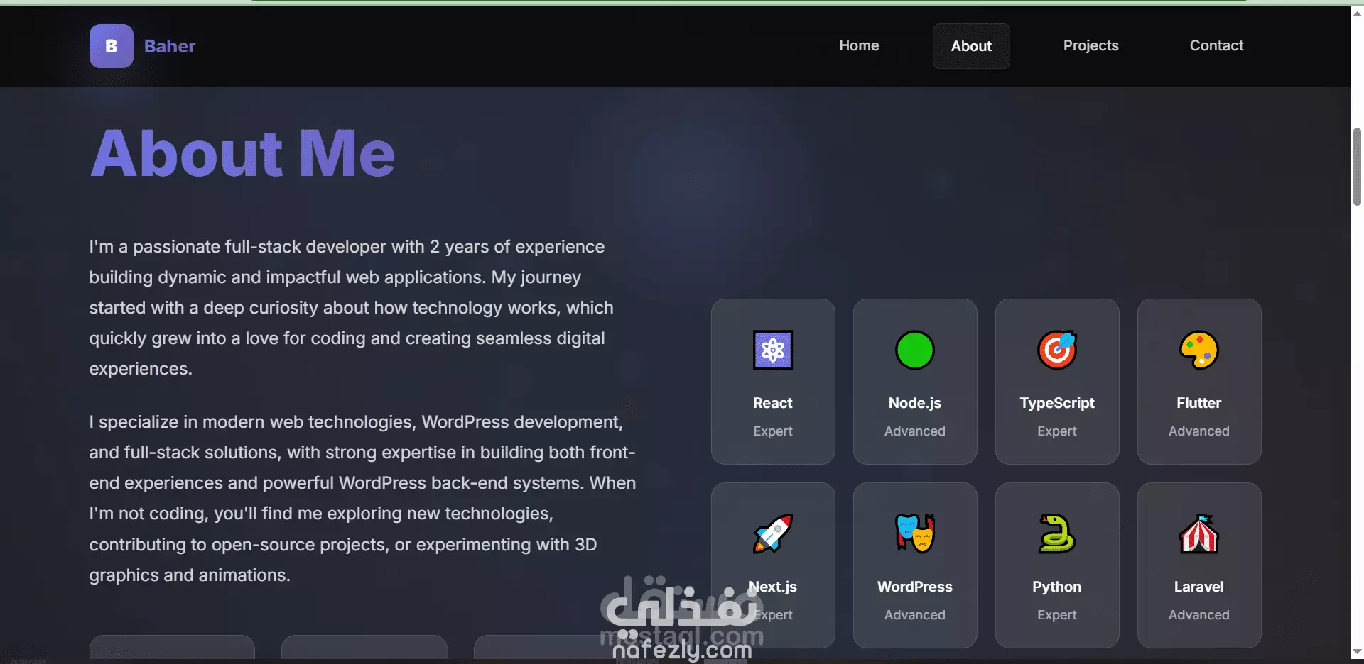 موقع إلكتروني احترافي وعصري لعرض أعمالي كمطور برامج متكامل، بخبرة في تطوير ووردبريس، وتطوير الواجهات الأمامية والخلفية. يتميز الموقع بتصميم أنيق وسريع الاستجابة، ويُبرز مشاريع متنوعة، بما في ذلك منصات التجارة الإلكترونية، والمواقع الطبية، والمنصات التعليمية، وتطبيقات تتبع اللياقة البدنية. يتضمن كل مشروع عرضًا توضيحيًا مباشرًا، ومستودعًا على GitHub، ووصفًا مفصلًا، مما يُظهر مهاراتي في HTML وCSS وJavaScript وReact وتخصيص ووردبريس. صُمم هذا الموقع ليكون سريعًا وسهل الاستخدام وجذابًا بصريًا على جميع الأجهزة، ويعكس شغفي بابتكار حلول رقمية عالية الجودة.