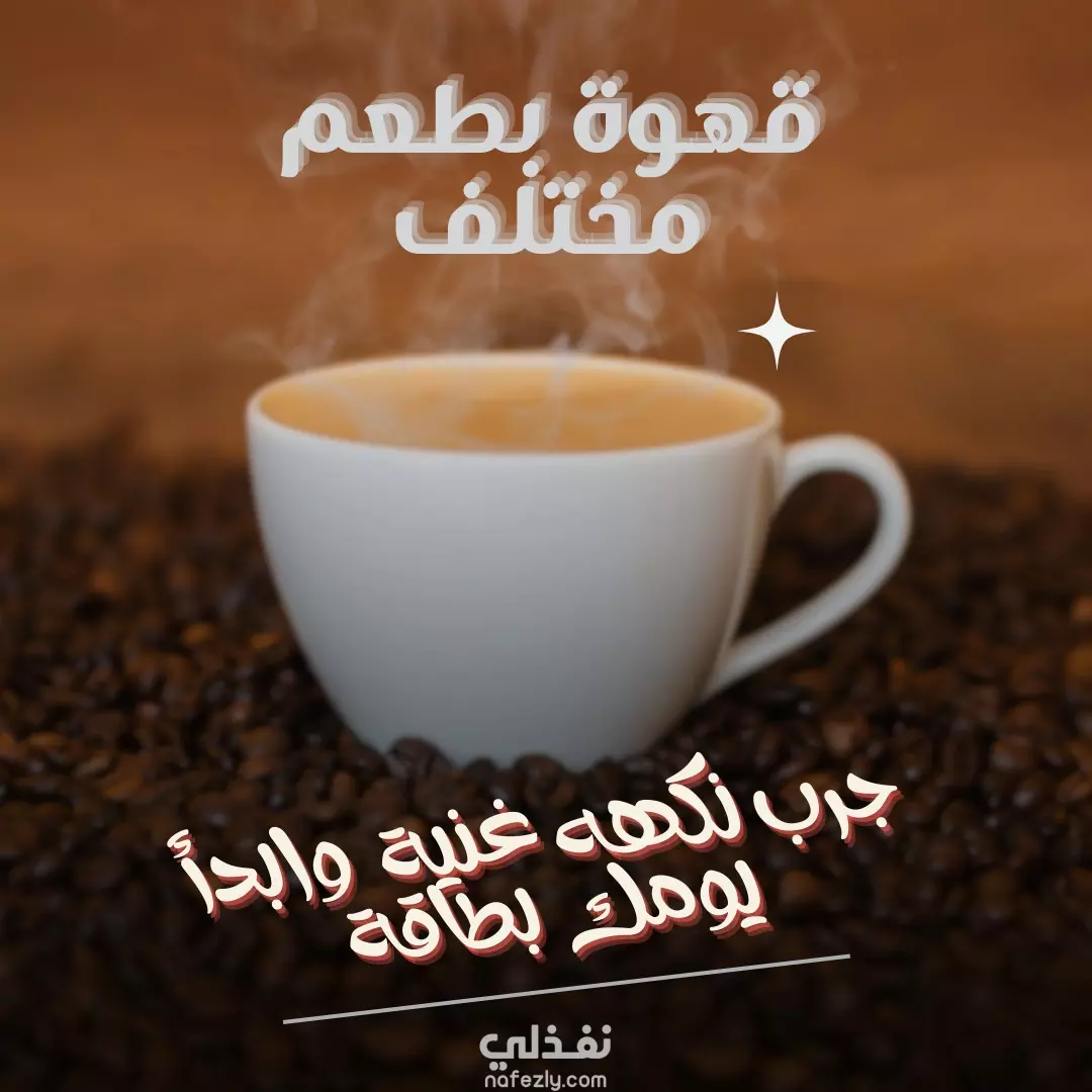 تصميم دعائي أنيق لفنجان قهوة مع خلفية من حبوب البن، مكتوب عليه جملة تسويقية باللغة العربية بخط عصري وجذاب. التصميم يعكس دفء القهوة ويحفّز المتلقي على تجربتها، مناسب للحملات الإعلانية والمقاهي.