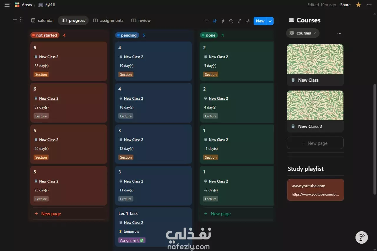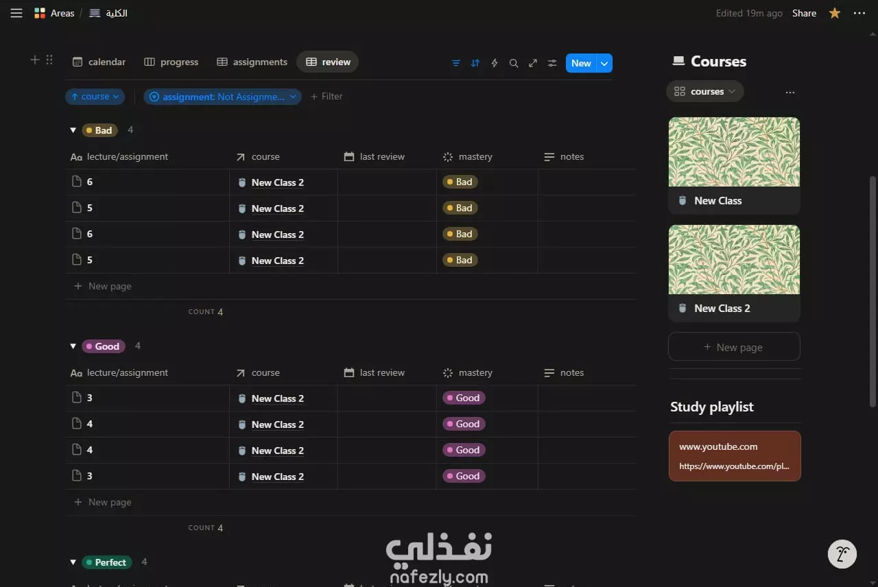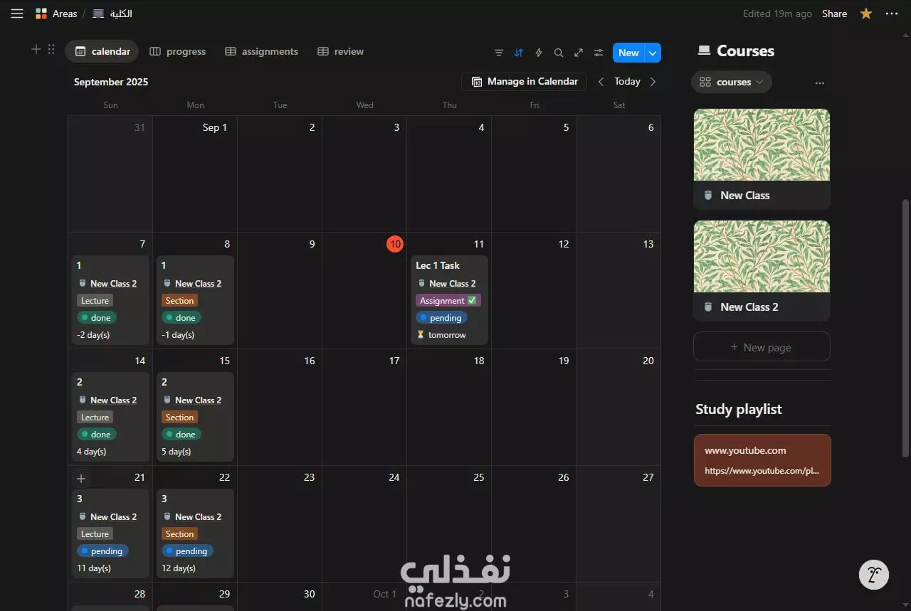 تصميم نظام متكامل لإدارة وتنظيم الدراسة على Notion