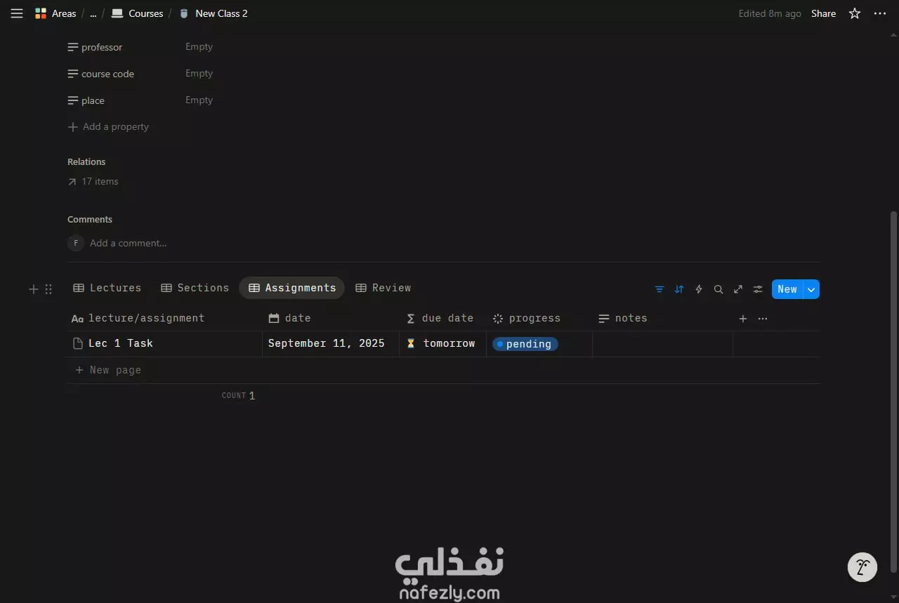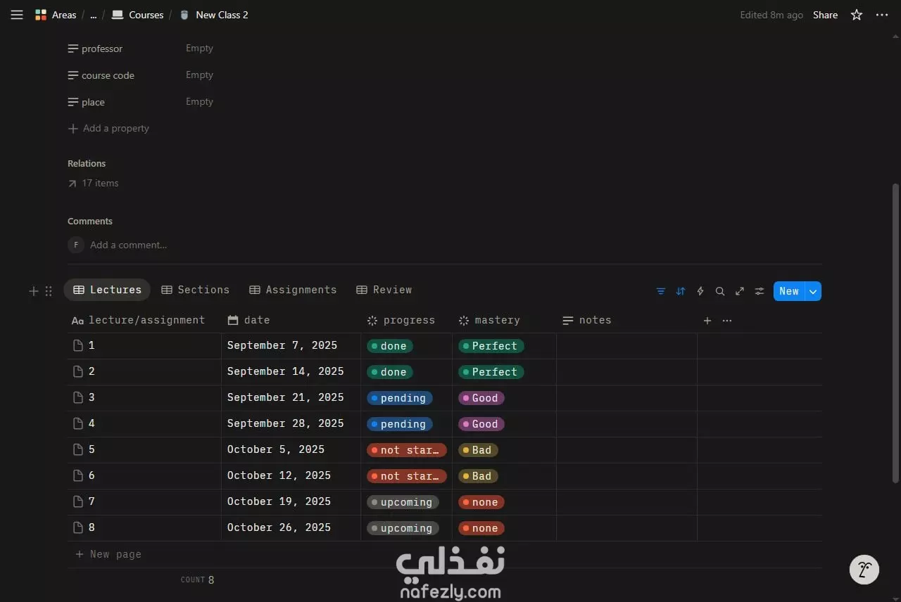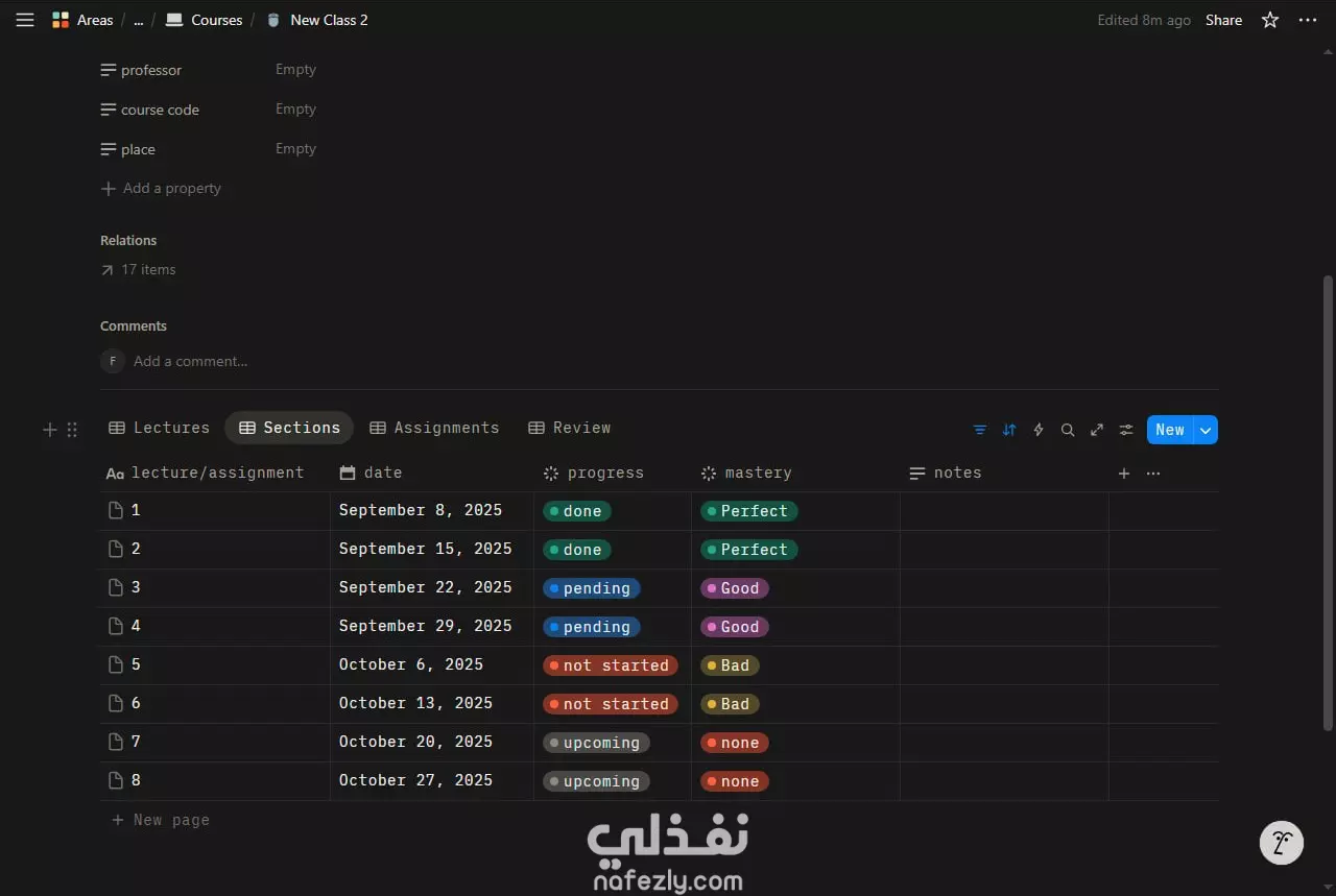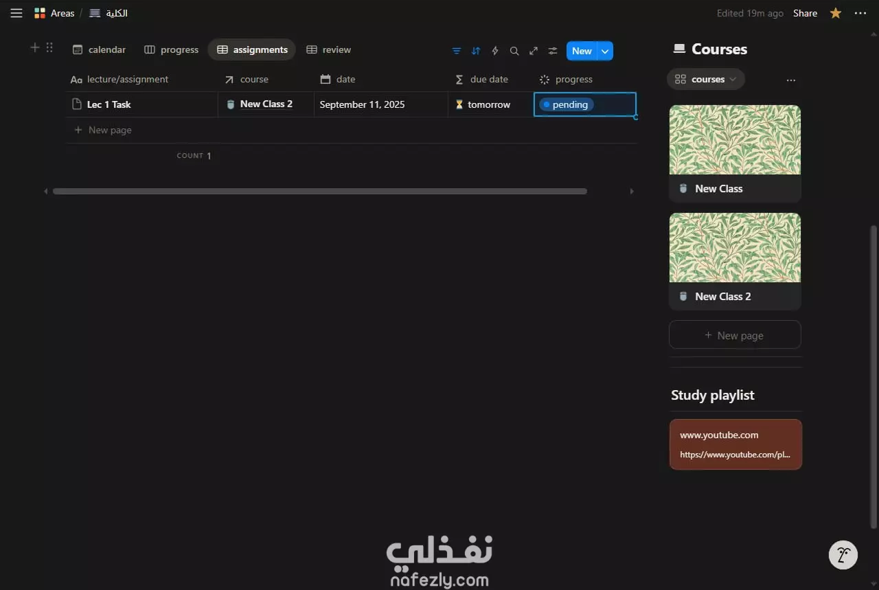 تصميم نظام متكامل لإدارة وتنظيم الدراسة على Notion