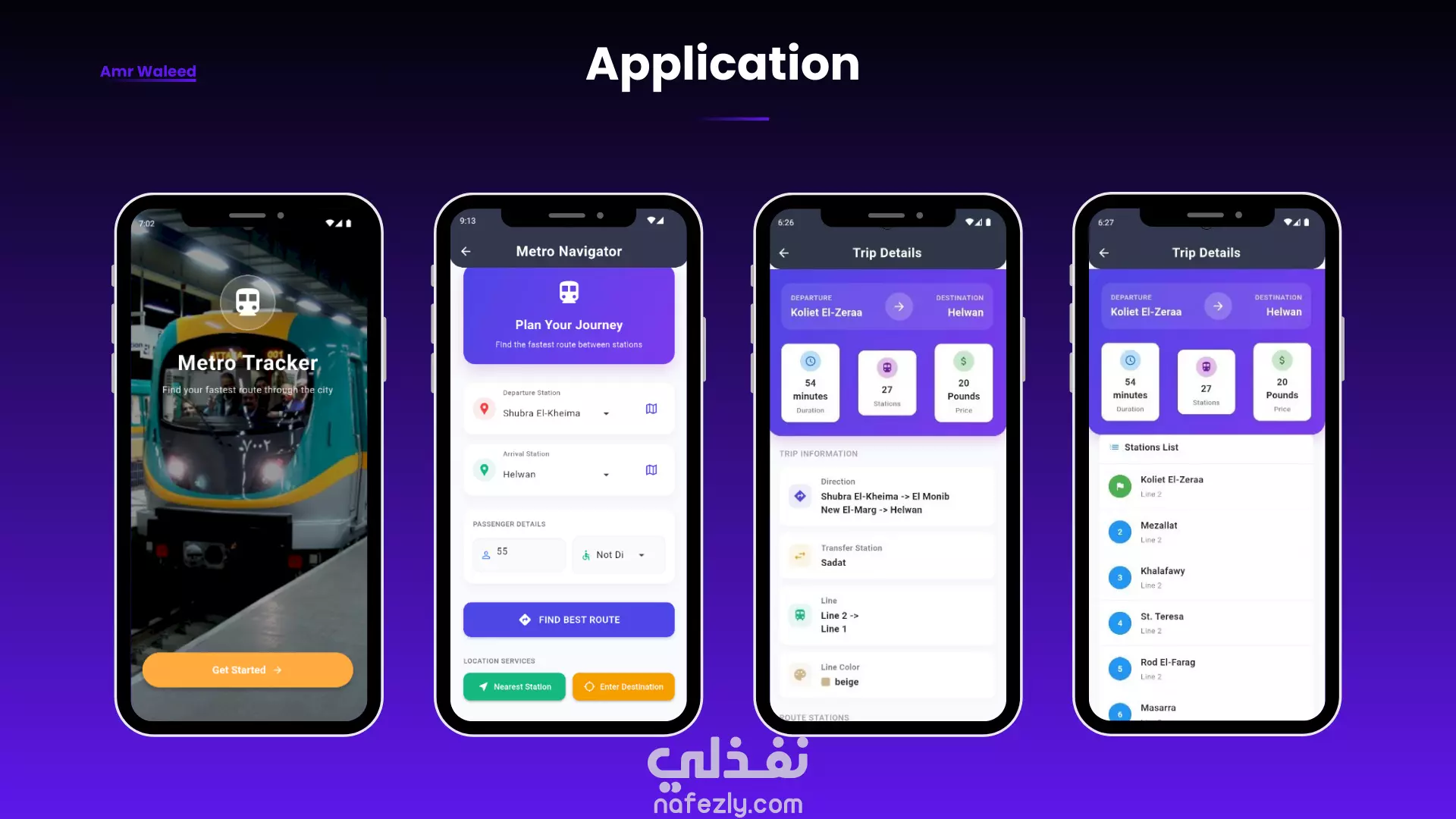 تطبيق جوال يُسهّل على المستخدمين التنقل في مترو القاهرة من خلال تحديد أقرب محطة، وتخطيط الرحلات، وإيجاد أقصر الطرق، وتحديد محطات التحويل. يتكامل التطبيق مع خرائط جوجل، ويُقدّم تفاصيل الرحلة خطوة بخطوة، ليكون بمثابة دليل شخصي لتنقل أسرع وأكثر راحة. ✨ الميزات الرئيسية: 📍 تحديد موقعك الحالي والعثور على أقرب محطة تلقائيًا. 🔎 البحث في أي شارع أو منطقة للوصول إلى أقرب محطة. 🚉 تخطيط الرحلات بسهولة باختيار محطات "من" و"إلى". 🛤 تحديد أقصر طريق بين المحطات. 🔄 تحديد محطات التحويل عند تغيير الخطوط. 🗺 فتح أي محطة مباشرةً في خرائط جوجل. 📑 تفاصيل الرحلة خطوة بخطوة مع جميع المحطات على مسارك.