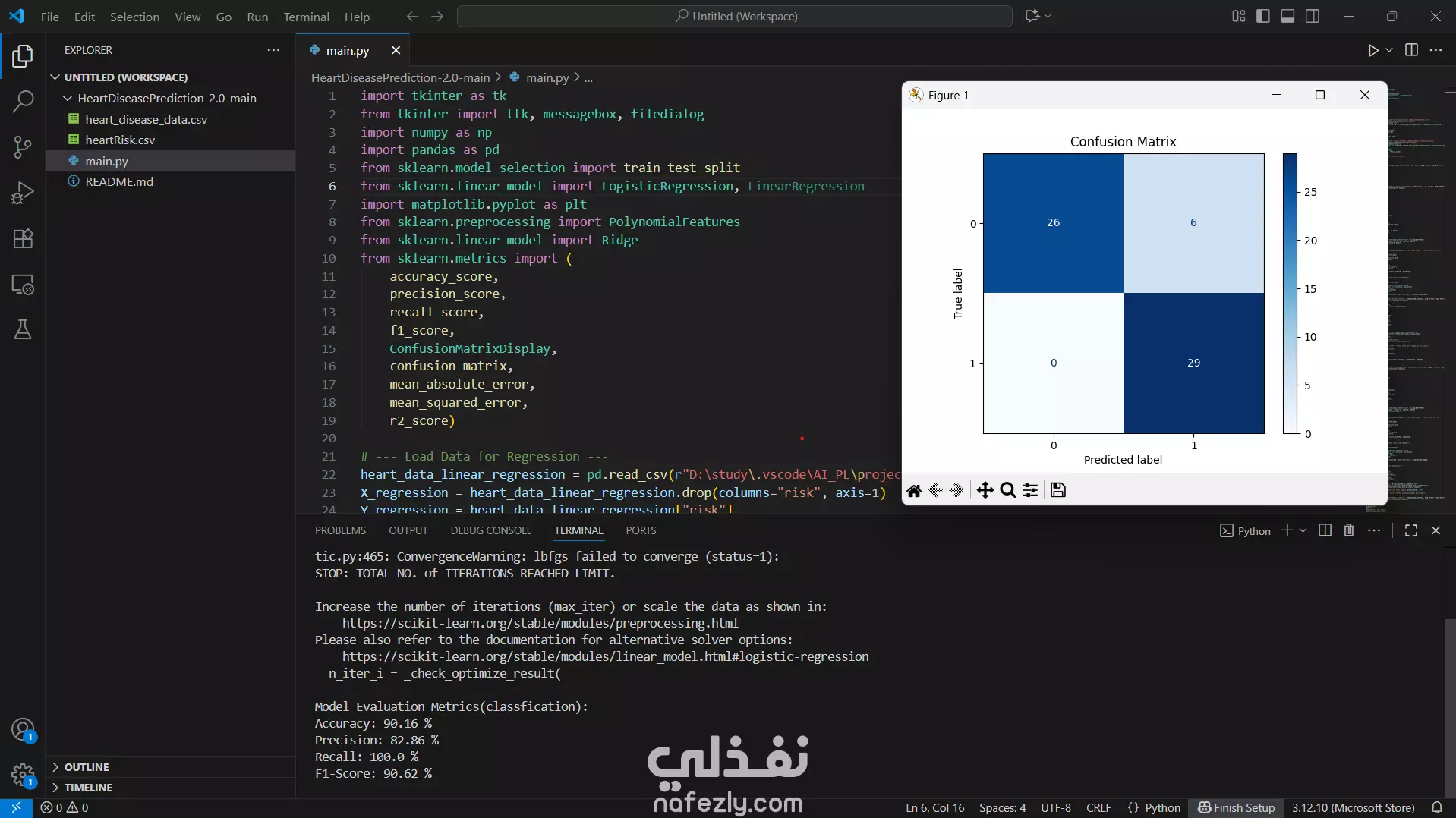 مشروع: التنبؤ باحتمالية الإصابة بأمراض القلب في المشروع دا طوّرت نظام ذكي بيتنبأ باحتمالية إصابة المريض بأمراض القلب اعتمادًا على مجموعة من المؤشرات الصحية (Health Indicators). بدأت بتجميع البيانات من مصادر طبية مختلفة، وبعدها عملت تنظيف ومعالجة (Data Cleaning & Preprocessing) للتأكد من جودة البيانات (إزالة القيم المفقودة، معالجة الـ outliers، والتقييس). بعد كده نفذت تحليلات استكشافية (EDA) عشان أفهم العلاقات بين المتغيرات، وعملت تصورات بصرية (Data Visualization) باستخدام مكتبات بايثون زي Matplotlib و Seaborn لتوضيح الأنماط والعلاقات في البيانات. بعد مرحلة التحليل، جربت أكتر من خوارزمية تعلم آلي للمقارنة بينهم بهدف الكشف المبكر (Early Detection) عن أمراض القلب، وده بيساعد الأطباء في اتخاذ قرارات أسرع وأدق. المهارات والتقنيات المستخدمة: - Data Collection & Cleaning (تجميع وتنظيف البيانات). - Exploratory Data Analysis (EDA) لفهم الأنماط والعلاقات. - Data Visualization لعرض النتائج بشكل مبسط وواضح. - Logistic Regression للتنبؤ بالنتائج الثنائية (مريض/غير مريض). Linear Regression للتحليل وفهم العلاقات. Data Preprocessing (معالجة القيم المفقودة والتقييس). Python (Scikit-Learn, Pandas, Matplotlib, Seaborn) لتطبيق الخوارزميات وبناء التصورات. المشروع بيوضح قدرتي على إدارة دورة عمل متكاملة في الـ Data Science: من جمع البيانات وتنظيفها، لحد بناء النماذج الذكية وتقييمها، وتقديم نتائج قابلة للتنفيذ في مجال حساس زي المجال الطبي.
