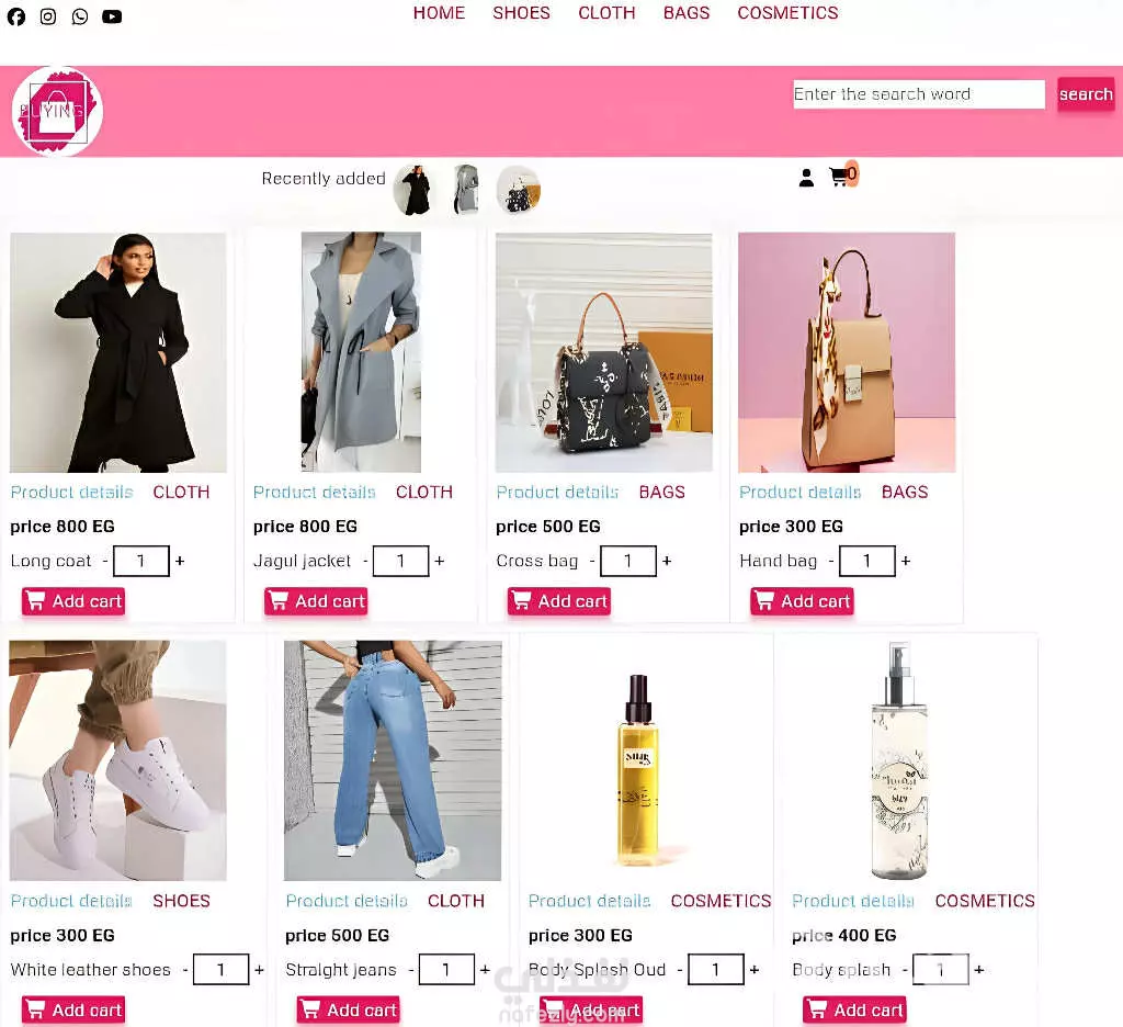 متجر الكتروني خاص للنساء و منتجات النساء لشراء و عمل سلة شراء و عمل لوحة تحكم سهلة للادمن لتحكم في جميع اجزاء الموقع المواقع متجاوب علي جميع الشاشات استخدمت html ,css,js ,php