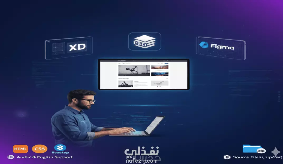 سأقوم بتحويل تصميمك (بأي من الصيغ التالية: XD / PSD / Figma) إلى صفحة ويب احترافية تشمل: