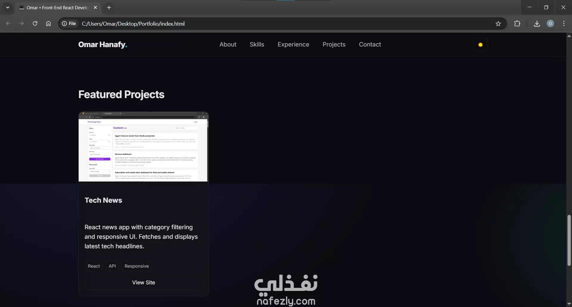 ستجد فيه أقسام تشرح مهاراتك الأساسية بشكل نقاط بسيطة، ويتم عرض بعض من أعمالك الحقيقيّة مع صور وشروحات مختصرة لكل عمل حتى يسهل على كل من يشاهد الصفحة التعرف على قدراتك.
