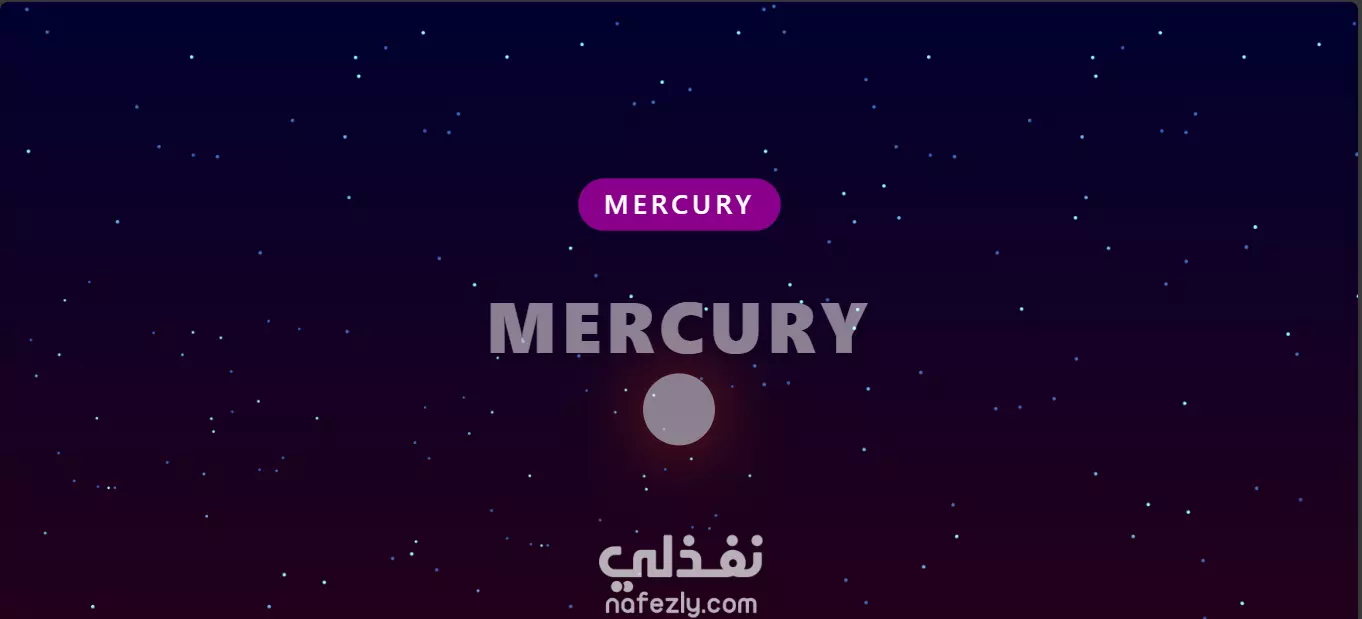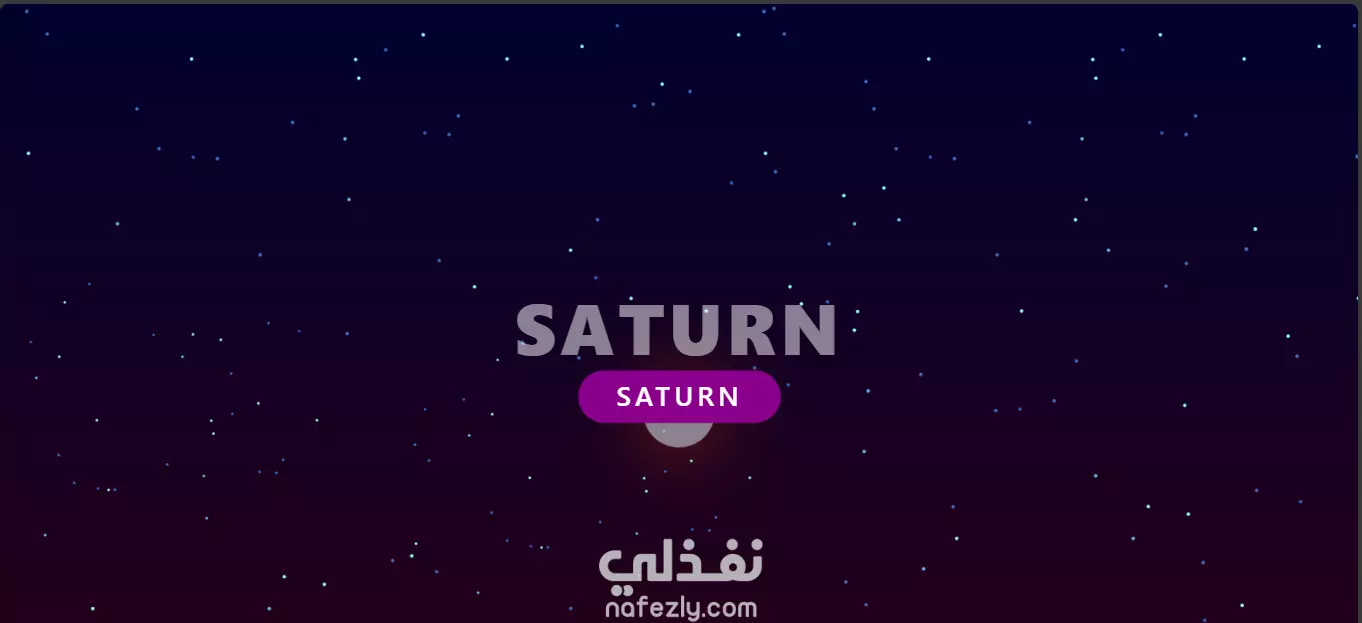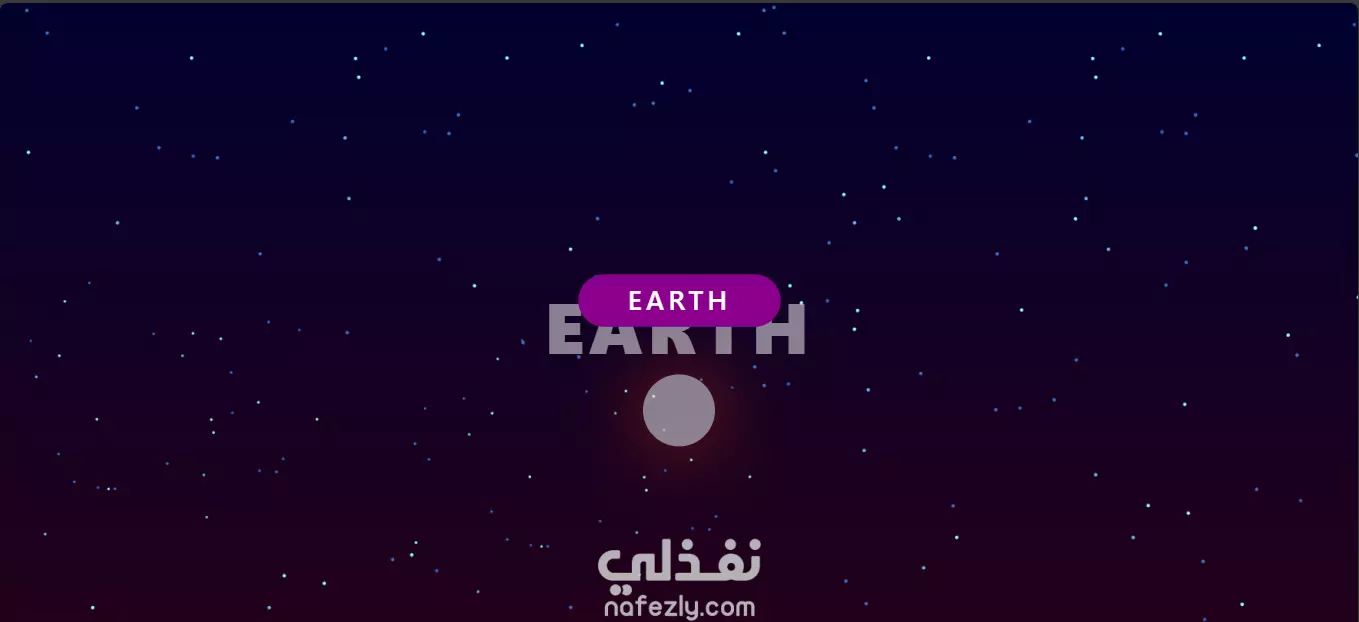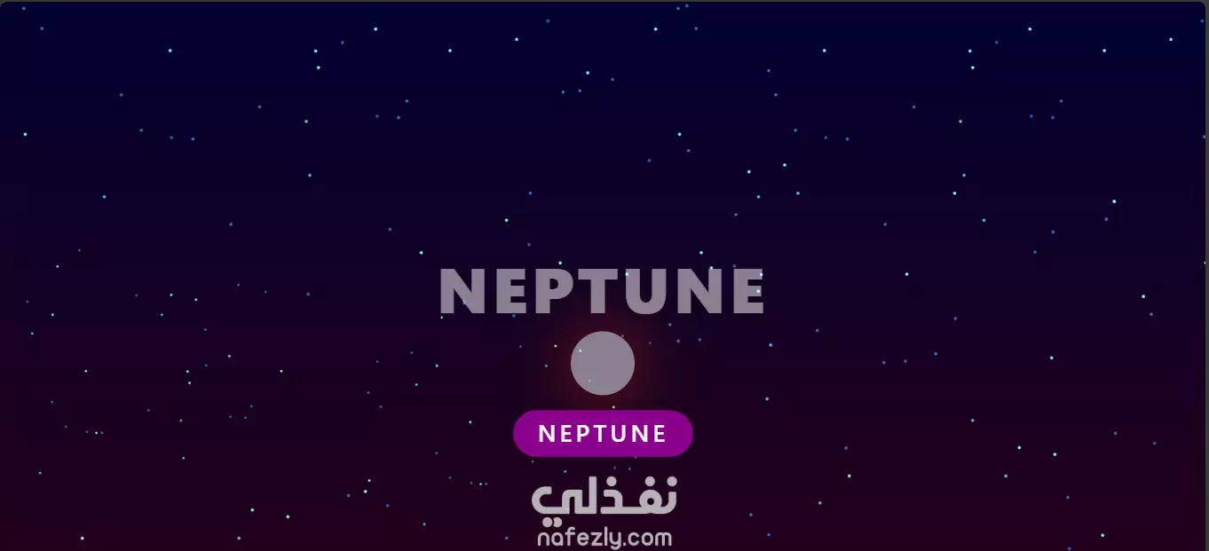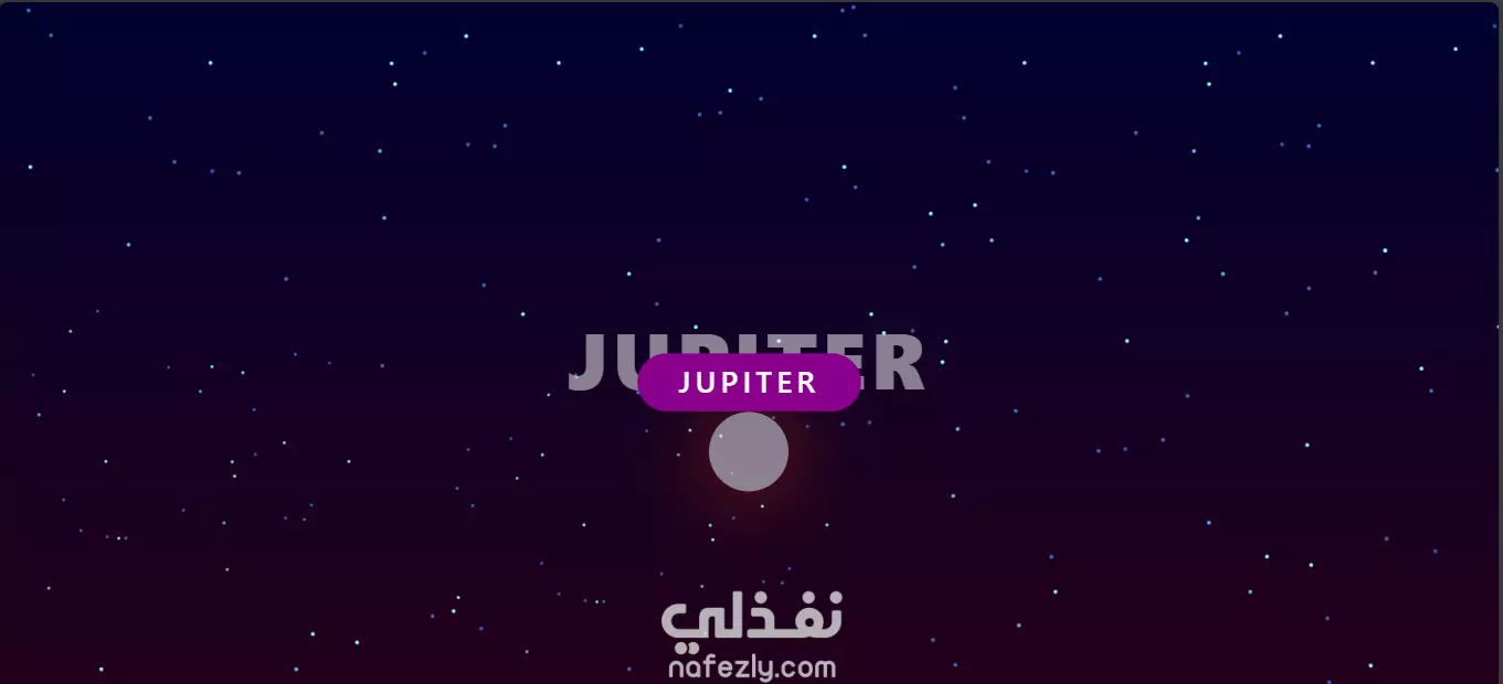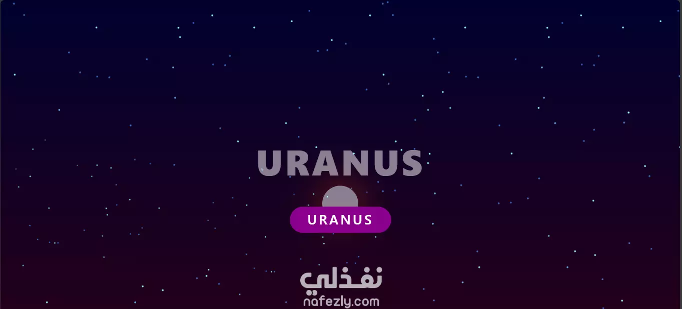 عند الضغط على أي كوكب يتم تمييزه ويظهر في منتصف الصفحة مع تفاصيل بصرية مميزة.