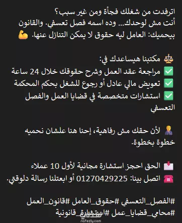 #الفصل_التعسفي #حقوق_العامل #قانون_العمل #محامي_قضايا_عمل #استشارة_قانونية