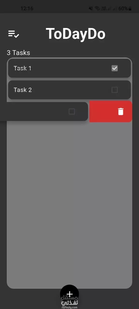تعديل وحذف المهام بسهولة: إمكانيات تعديل حالة المهمة (منجزة أو غير منجزة) وحذفها بالسحب فقط.