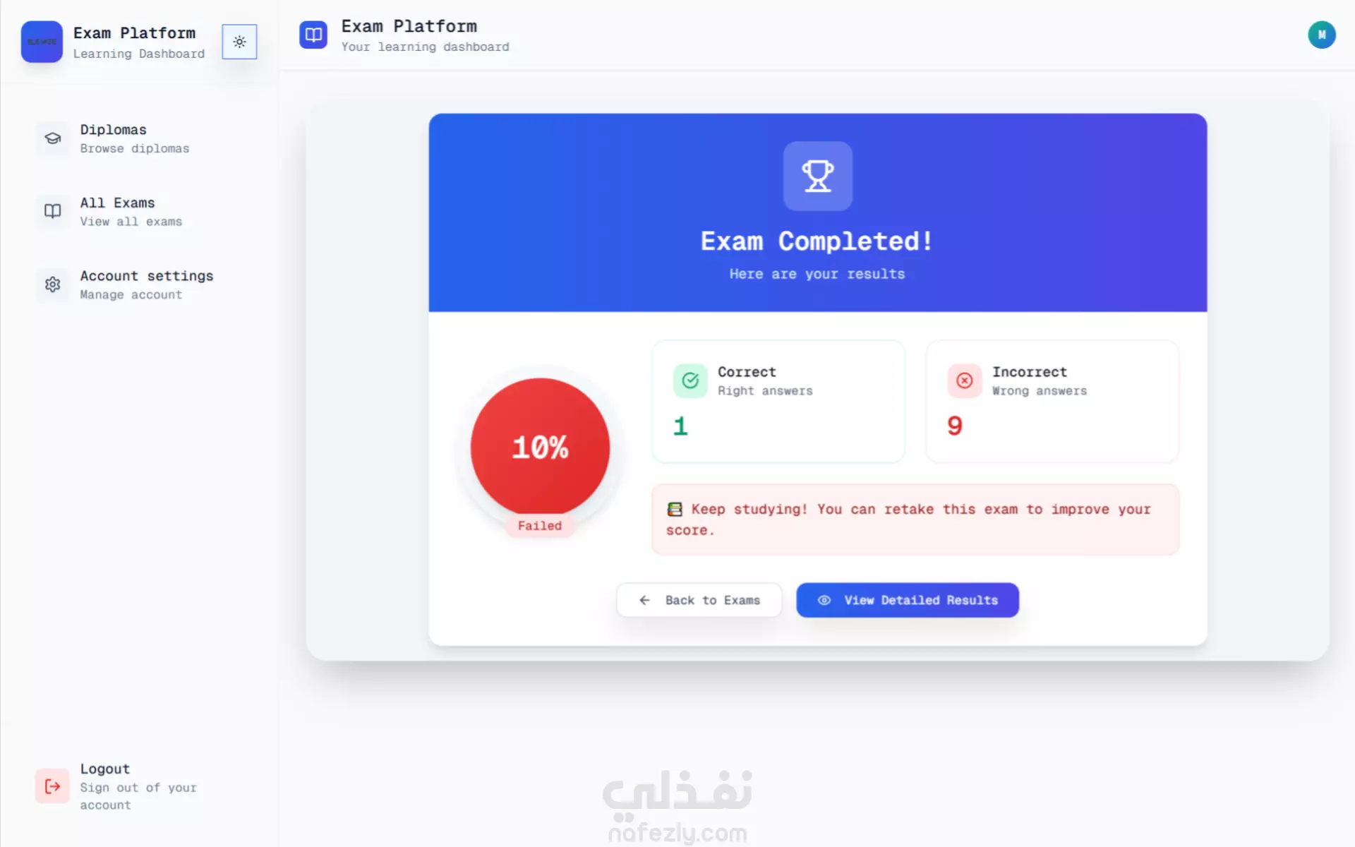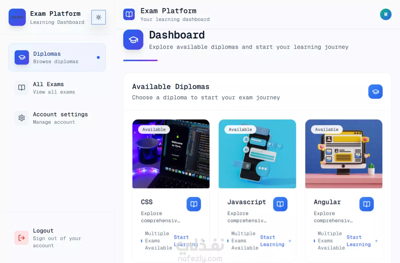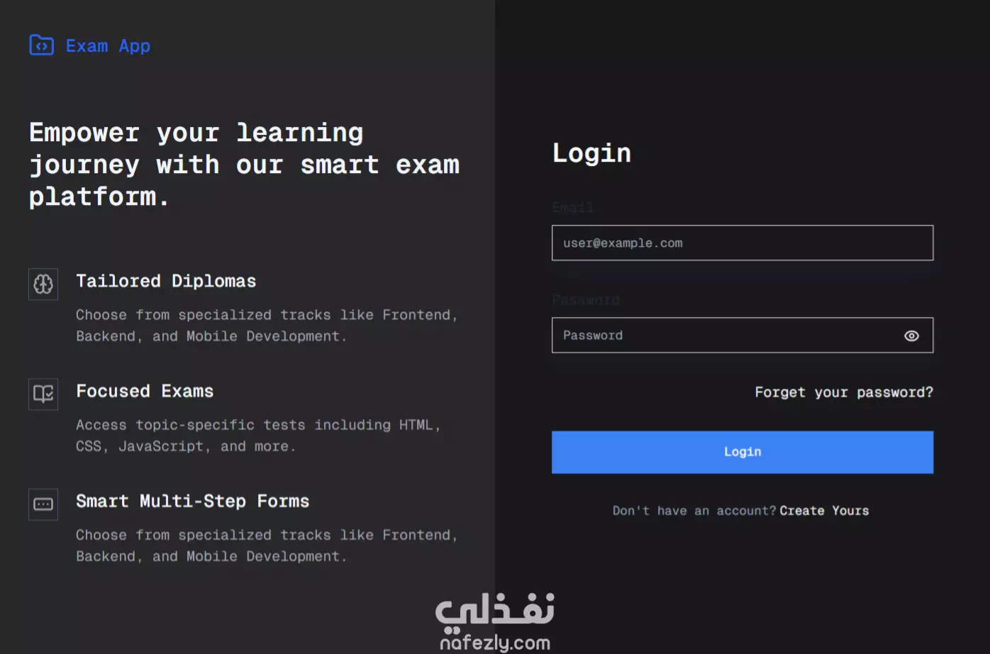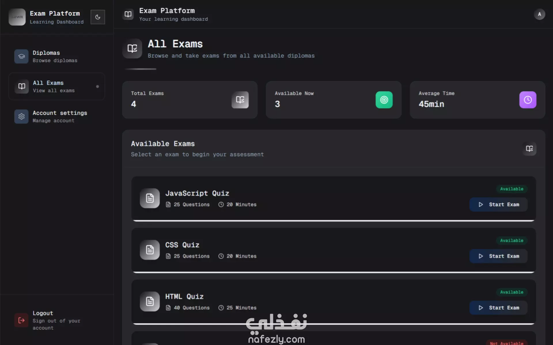 ExamApp هو تطبيق ويب متكامل لإدارة وإنشاء الاختبارات الإلكترونية، تم تطويره باستخدام Next.js وTypeScript.