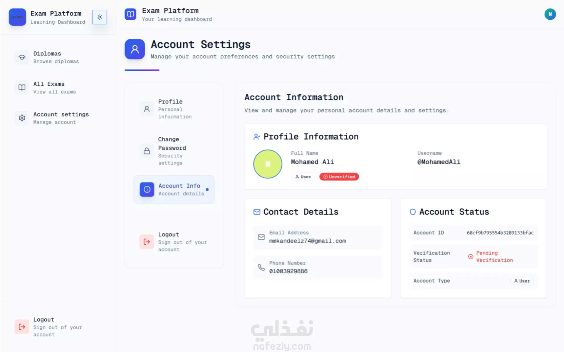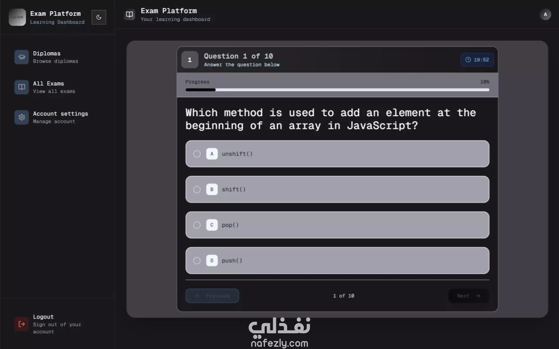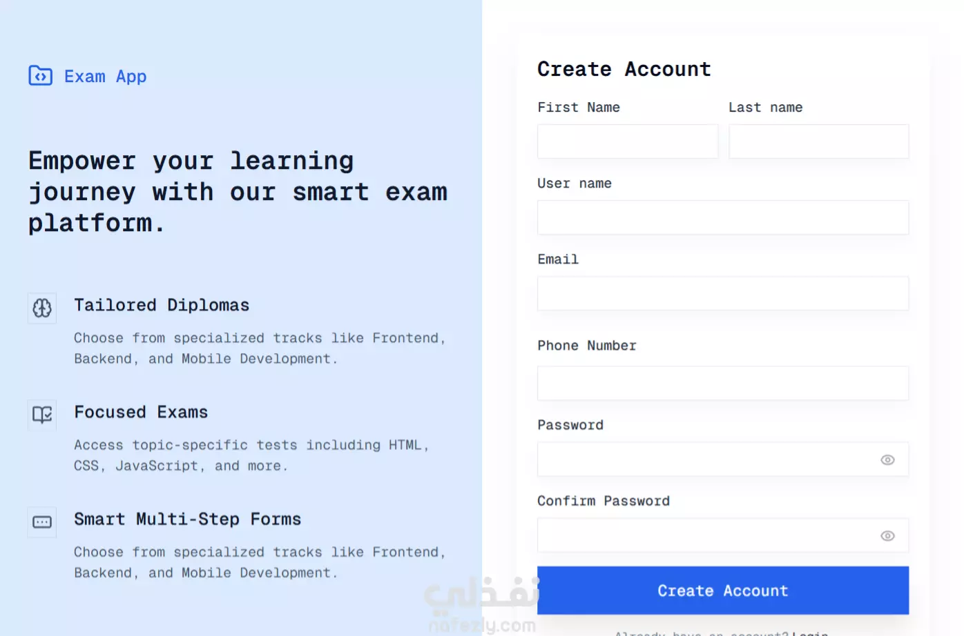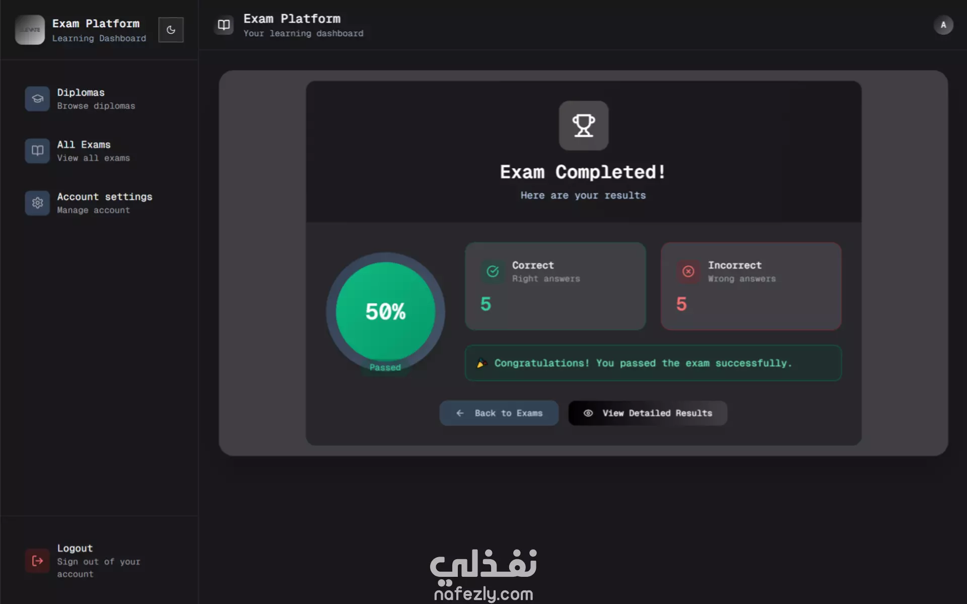 ExamApp هو تطبيق ويب متكامل لإدارة وإنشاء الاختبارات الإلكترونية، تم تطويره باستخدام Next.js وTypeScript.