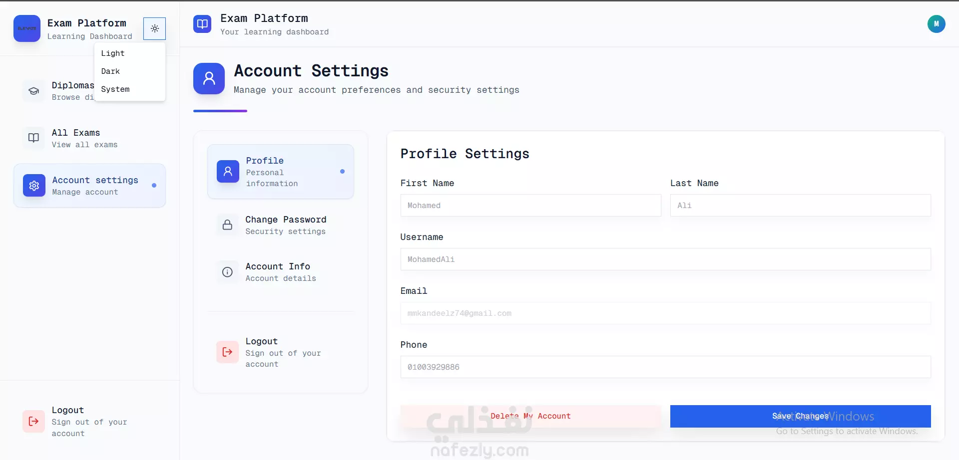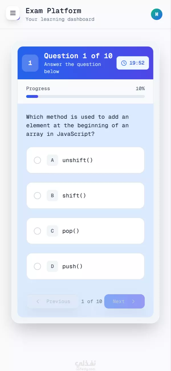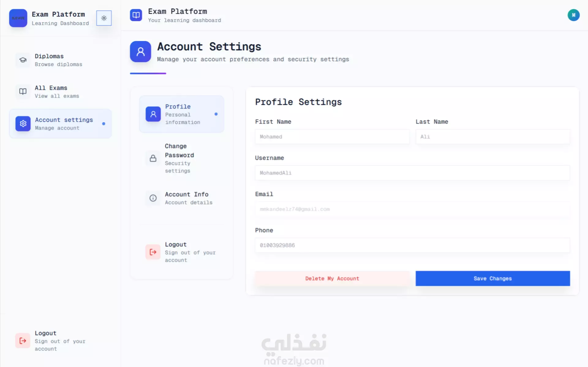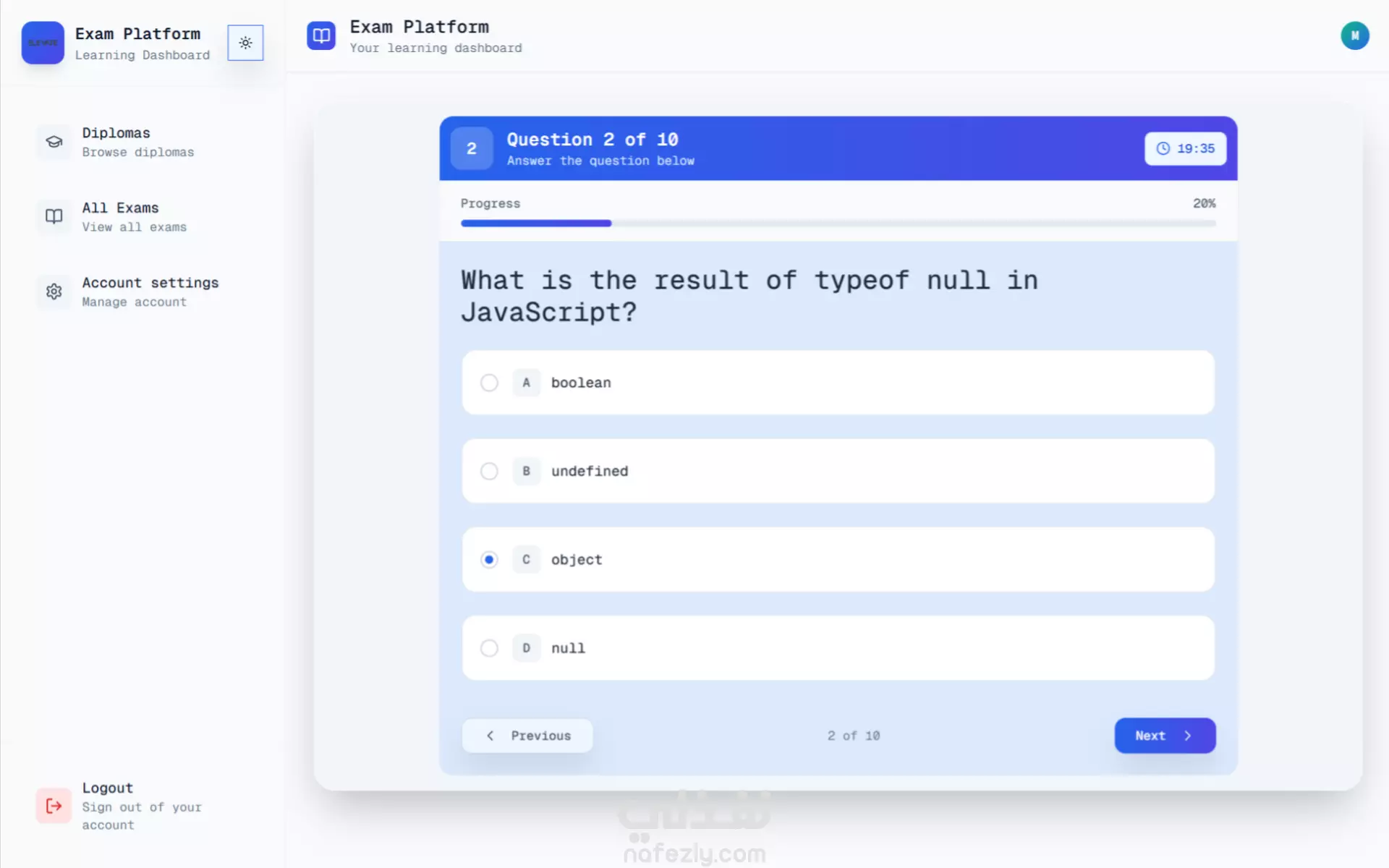 ExamApp هو تطبيق ويب متكامل لإدارة وإنشاء الاختبارات الإلكترونية، تم تطويره باستخدام Next.js وTypeScript.