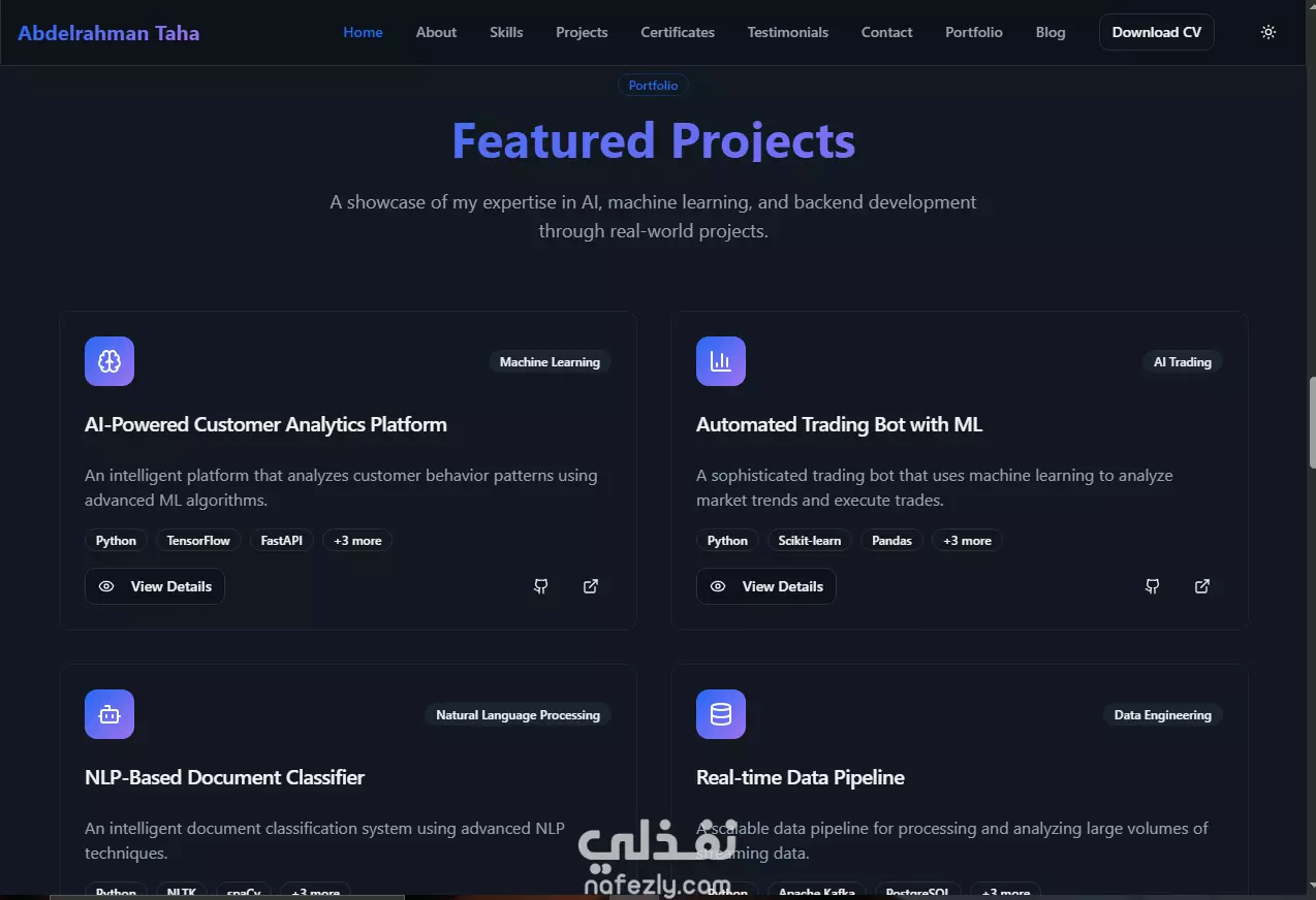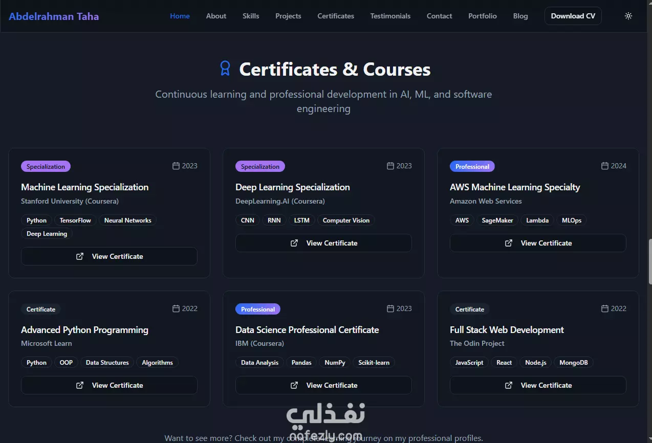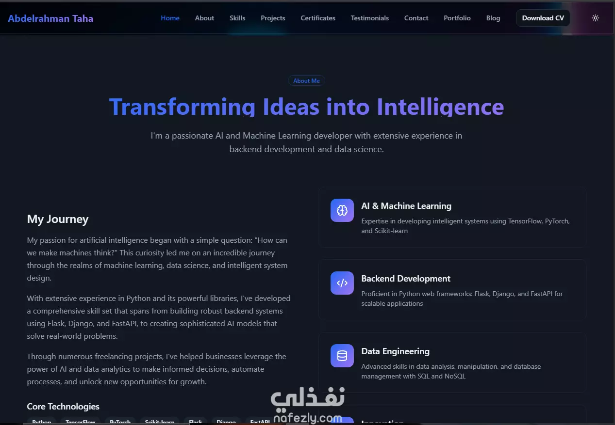 موقع شخصي اللكتروني لمبرمج زكاء اصطناعي