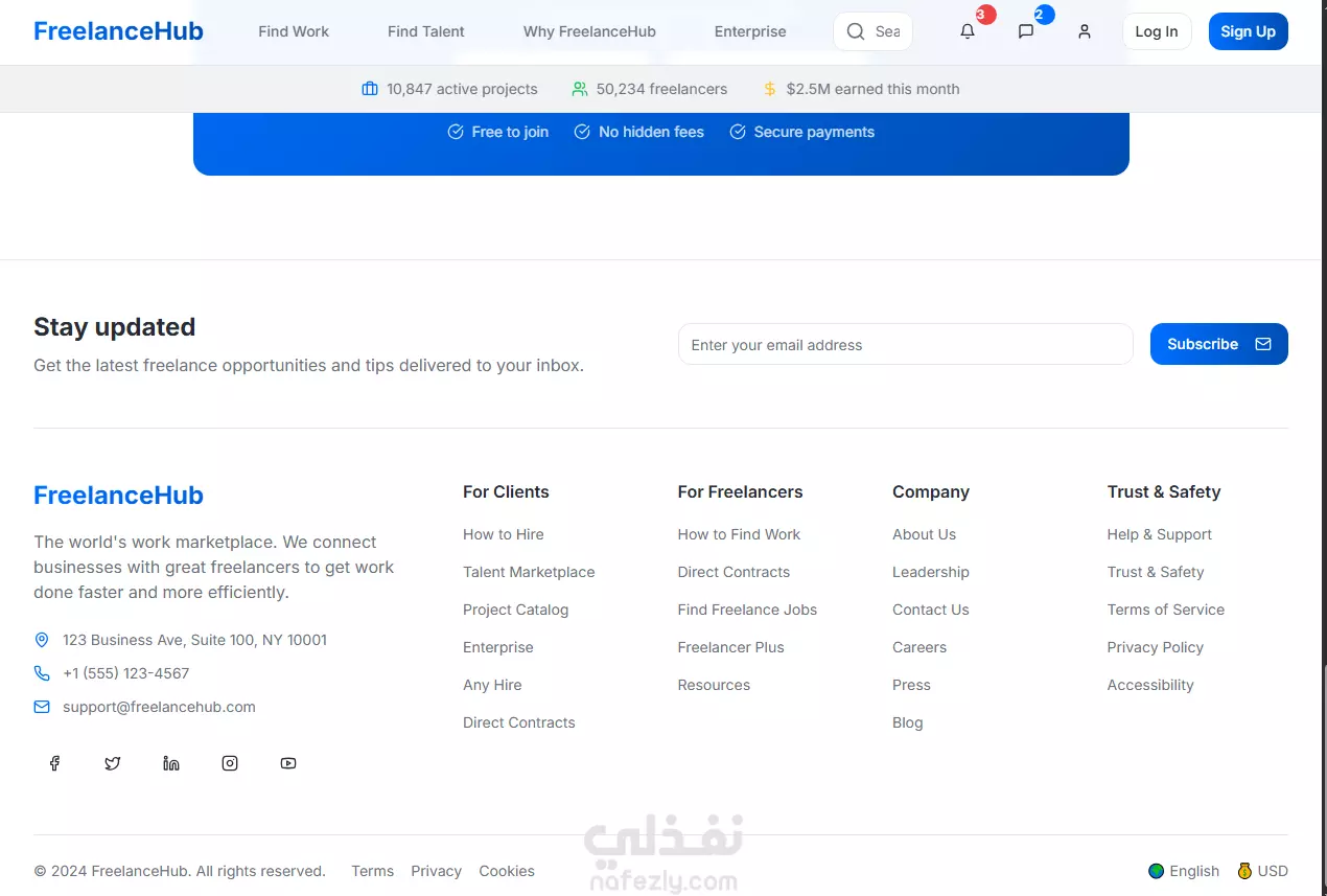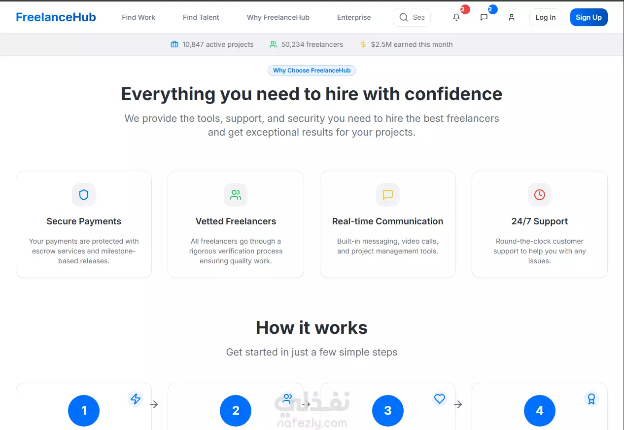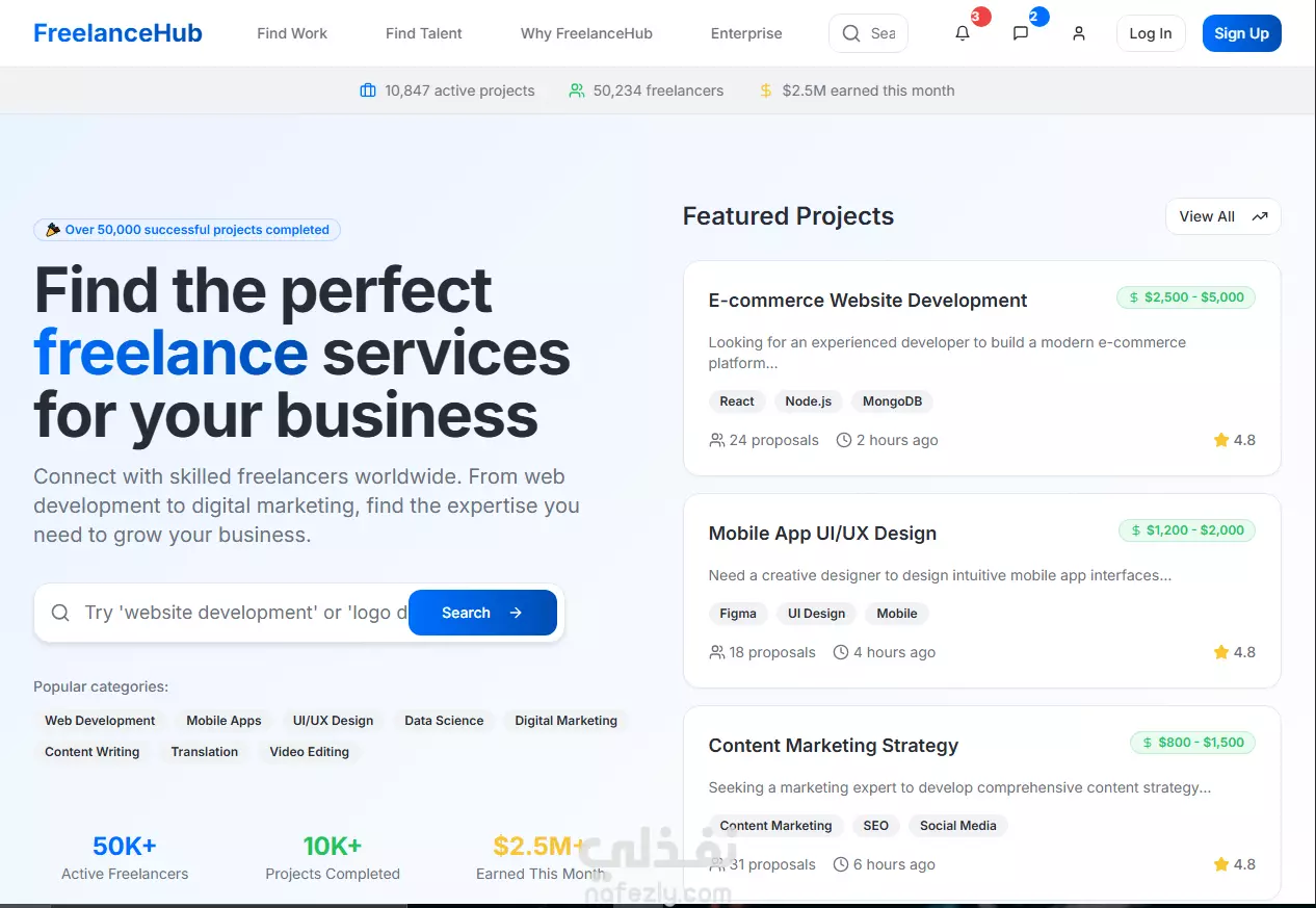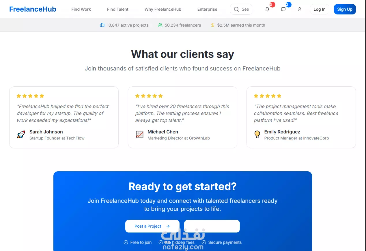 تصميم واجهة أمامية لمنصة FreelanceHub