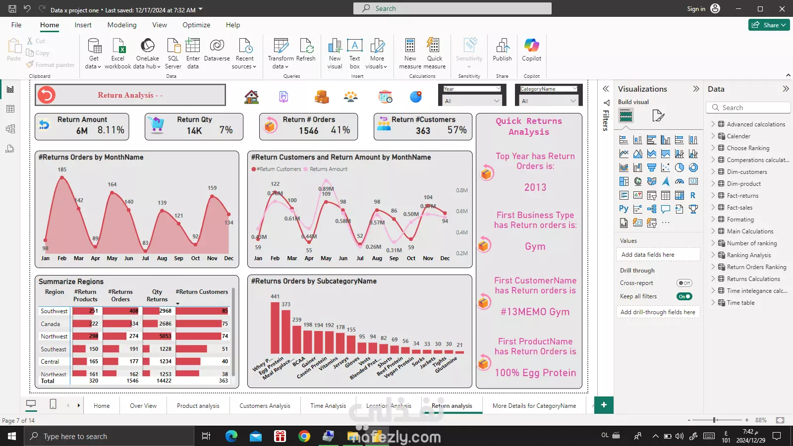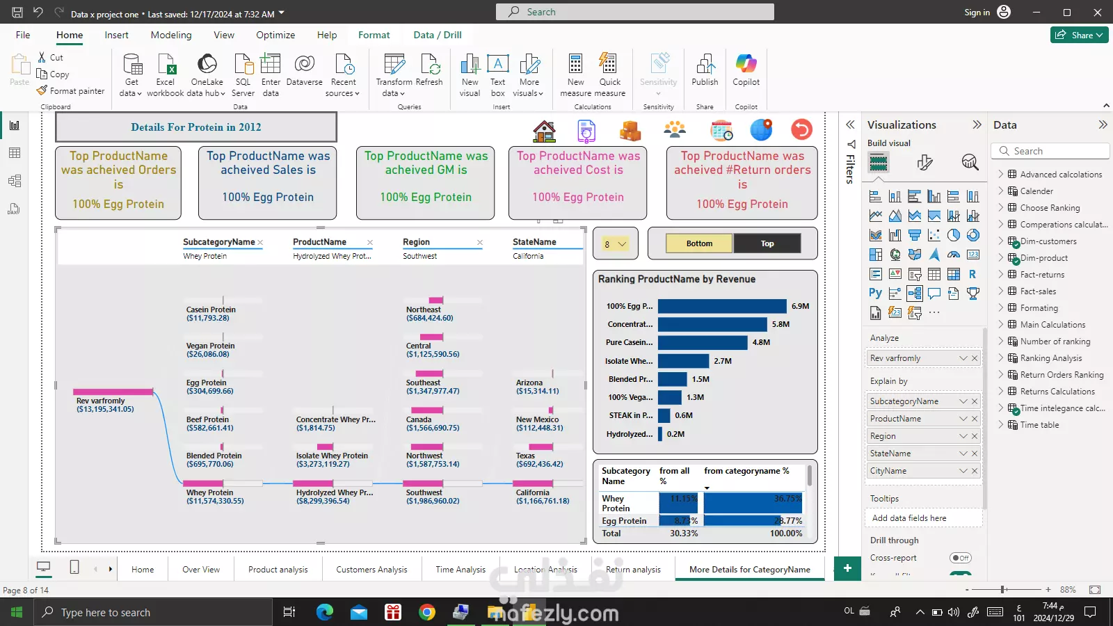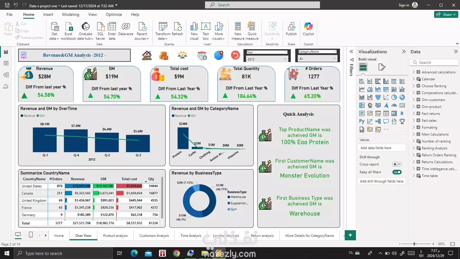 - توضيح معظم مؤشرات الأداء الرئيسية الخاصة ببيانات المبيعات مثلا: إجمالي المبيعات، اجمالي الارباح، اجمالي الطلبات إجمالي الكميات، عدد العملاء، متوسط قيمة الطلب لكل منتج ، وكذالك مؤشرات اداء اخرى وذلك يعتمد على كمية البيانات المتوفرة.