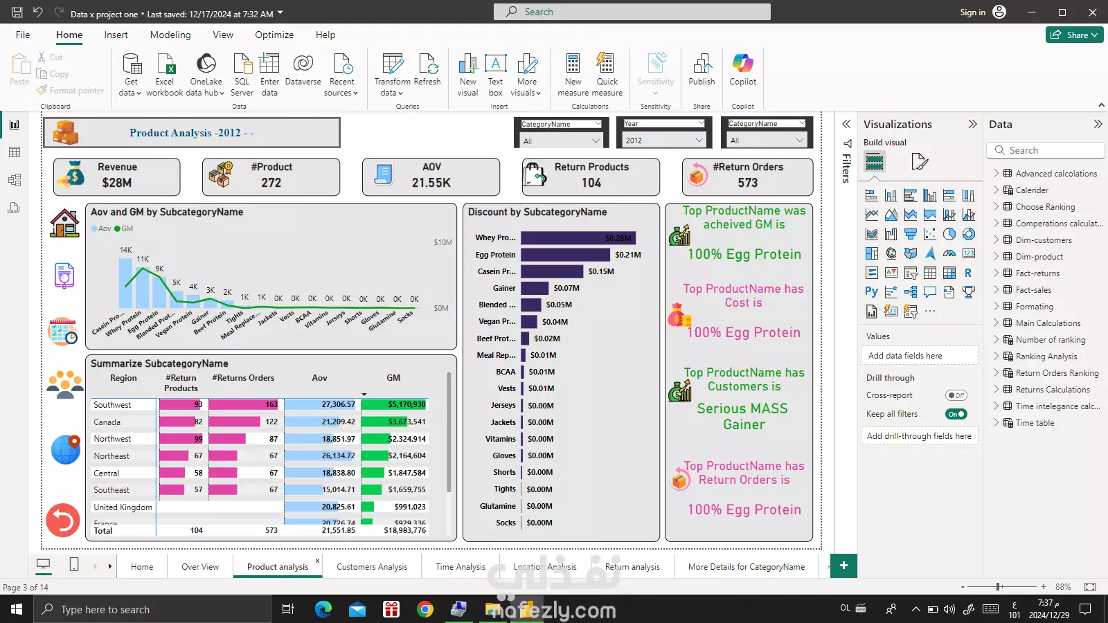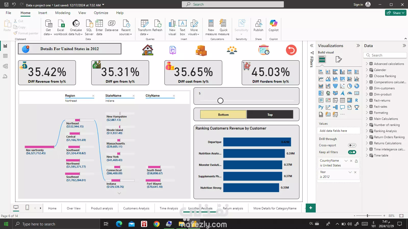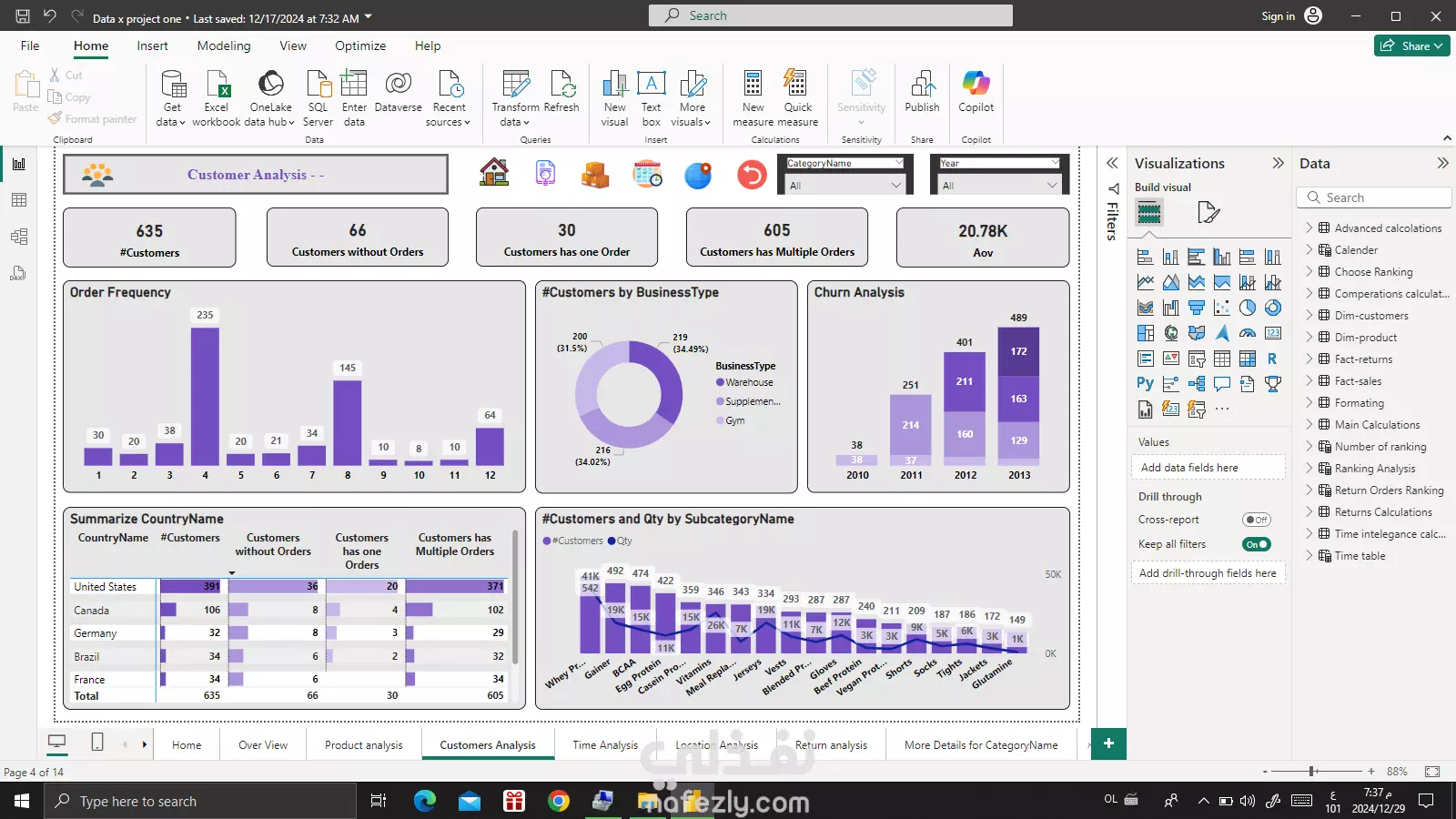 - توضيح معظم مؤشرات الأداء الرئيسية الخاصة ببيانات المبيعات مثلا: إجمالي المبيعات، اجمالي الارباح، اجمالي الطلبات إجمالي الكميات، عدد العملاء، متوسط قيمة الطلب لكل منتج ، وكذالك مؤشرات اداء اخرى وذلك يعتمد على كمية البيانات المتوفرة.