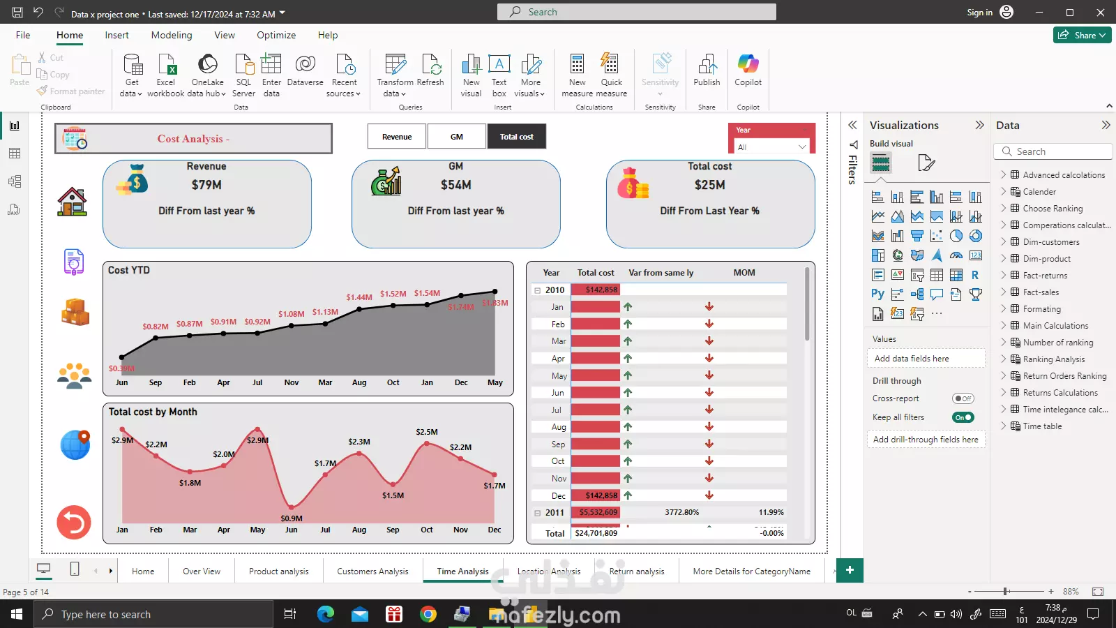 - عرض مؤشرات الأداء الرئيسية مع كل بعد تريد معرفته مثلا إجمالي المبيعات مع الشهور، اجمالي المبيعات مع المنتجات.