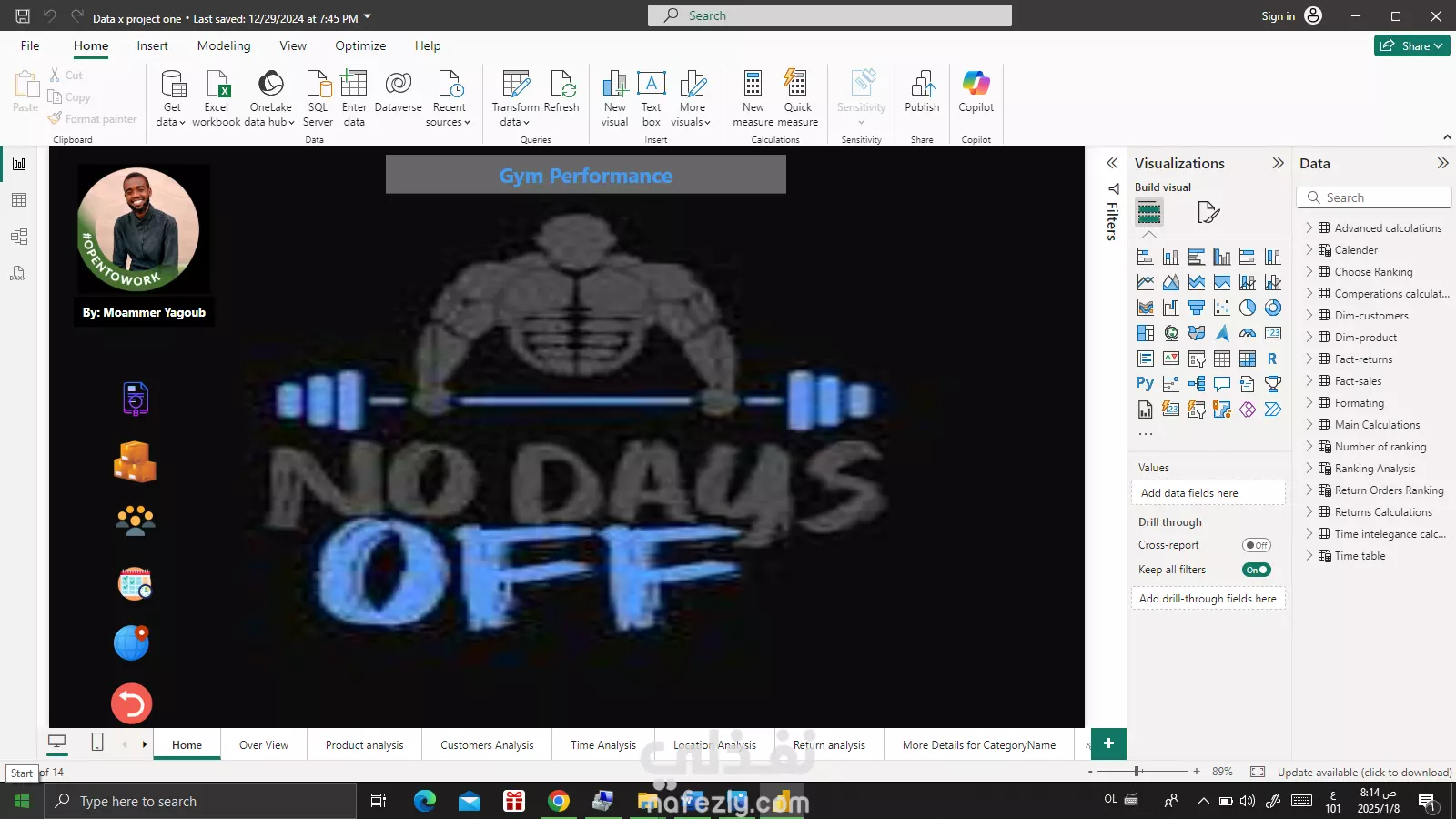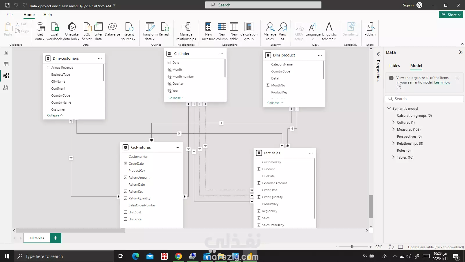 تنظيف ومعالجة البيانات وعمل علاقات بين الجداول لتكون جاهزة للتحليل وحساب مؤشرات الأداء الرئيسية. -