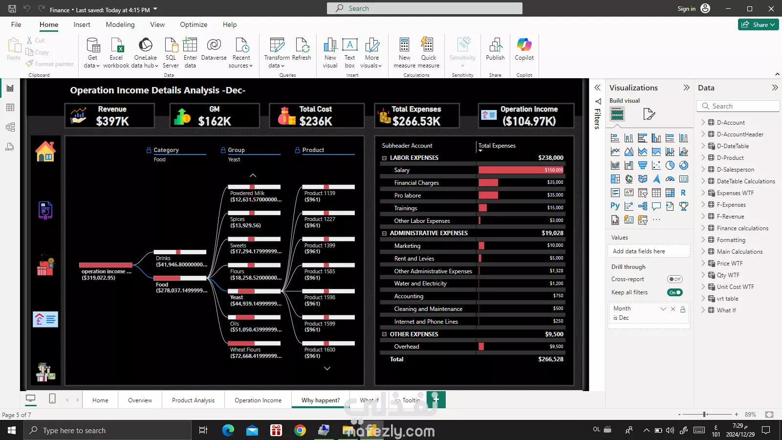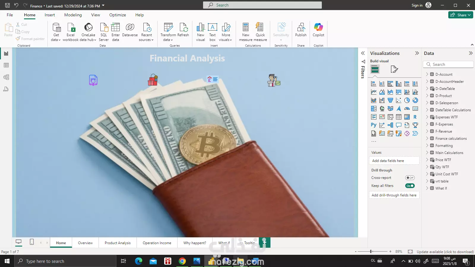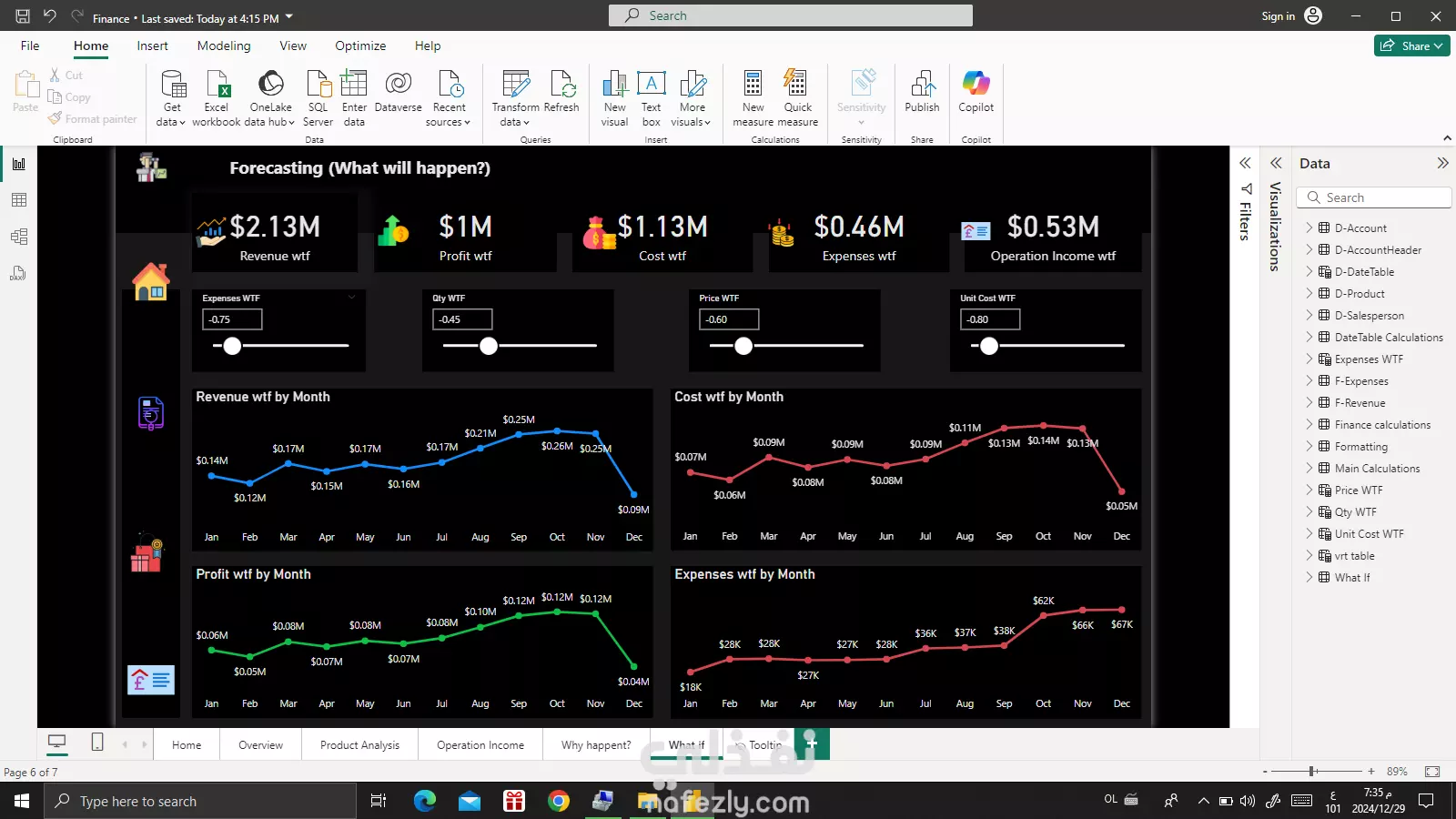 - توضيح معظم مؤشرات الأداء الرئيسية الخاصة ببيانات الماليات مثلا: إجمالي التكاليف, Vertical analysis, Horizontal analysis, PNL, إجمالي المبيعات، اجمالي الارباح، اجمالي الطلبات, إجمالي الكميات، عدد العملاء , Operation income,متوسط قيمة الطلب لكل منتج ، وكذالك مؤشرات اداء اخرى وذلك يعتمد على كمية البيانات المتوفرة.