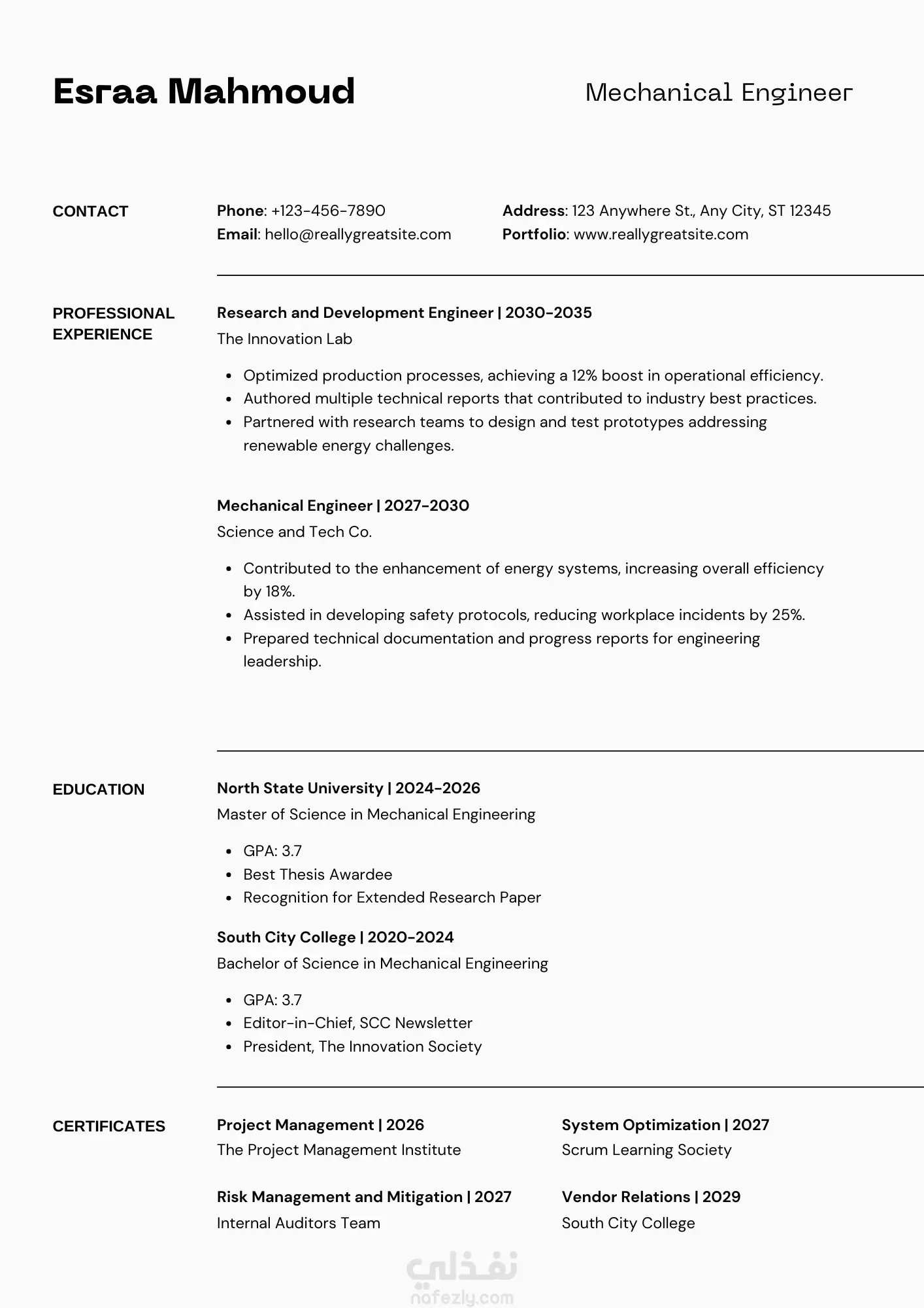 -تنسيق بسيط وسهل القراءة من قِبل الشركات وأنظمة التوظيف.
