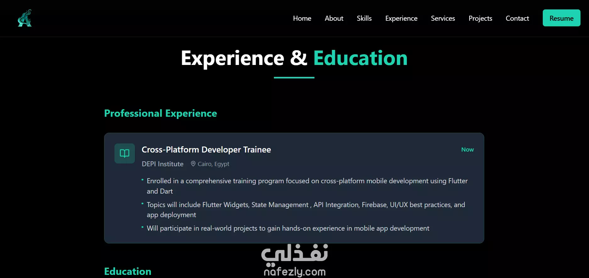 📌 وصف العمل: هذا المشروع عبارة عن موقع بورتفوليو شخصي يعرض مهارات وخبرات المطوّر Amr Waleed. تم تصميمه ليكون بسيط، عصري، وسهل التصفح، بحيث يقدّم نبذة واضحة عن المطوّر، مشاريعه، والخدمات التي يقدمها. 🎨 المواصفات: واجهة مستخدم (UI/UX) متجاوبة الموقع متوافق مع جميع الشاشات (موبايل – تابلت – ديسكتوب). تصميم نظيف يعتمد على ألوان هادئة مع توزيع منظم للعناصر. الأقسام الرئيسية الصفحة الرئيسية: ترحيب + تعريف قصير بالمطور. عنّي (About Me) المشاريع (Projects/Portfolio) المهارات (Skills) التواصل (Contact) تجربة استخدام مميزة سهولة الانتقال بين الأقسام. تصميم بسيط يركّز على المحتوى بدل الزخرفة الزائدة. 🛠️ الأدوات والتقنيات المستخدمة: React Framework Tailwind CSS JavaScript 🚀 الهدف من المشروع: تقديم صورة احترافية عن المطوّر. إبراز المهارات والخبرات بطريقة جذّابة وسهلة القراءة. توفير وسيلة سريعة للتواصل مع العملاء أو أصحاب العمل.