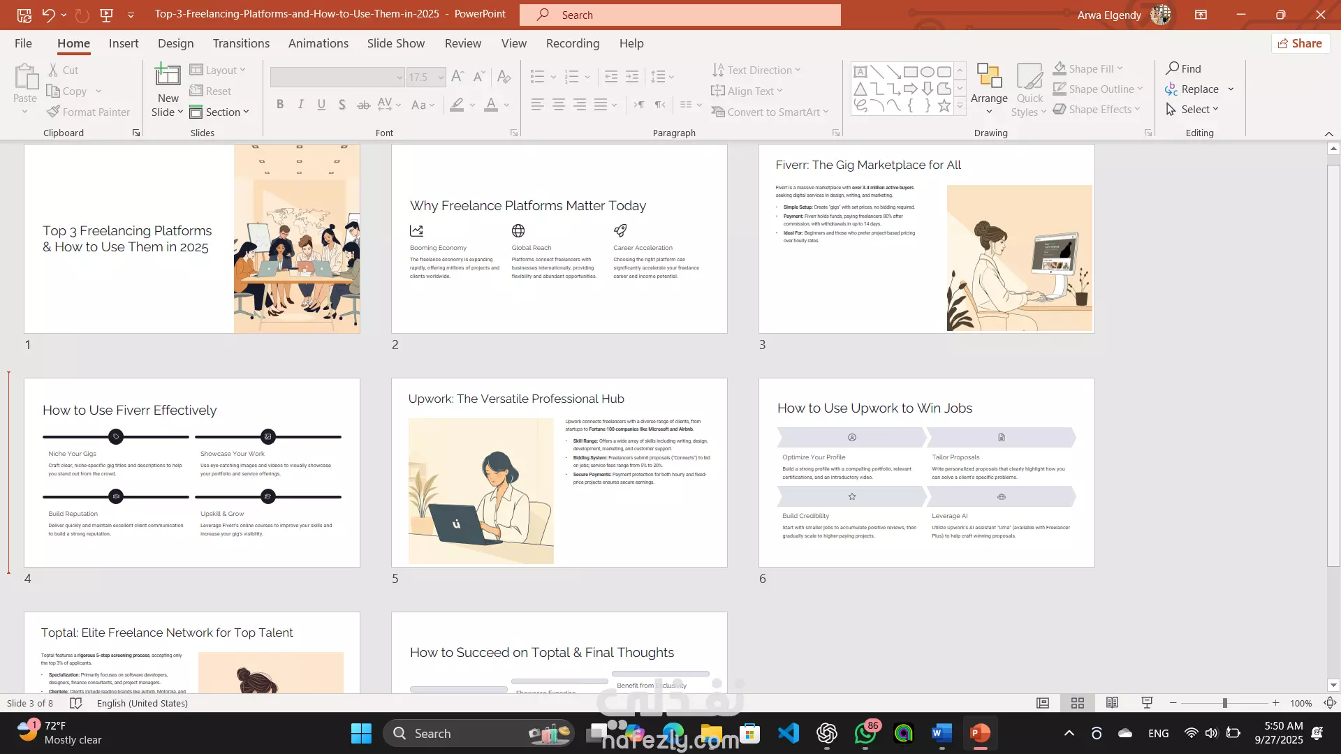هذا العمل يوضح قدرتي على تصميم وعرض محتوى PowerPoint بشكل منسق وجذاب، مع: تنظيم الشرائح بطريقة واضحة وسلسة. استخدام ألوان وتصاميم مناسبة لتوضيح الأفكار. إضافة نصوص، صور، وجداول بشكل مرتب داخل الشرائح. التأكد من سهولة العرض والتصفح لكل الشريحة.
