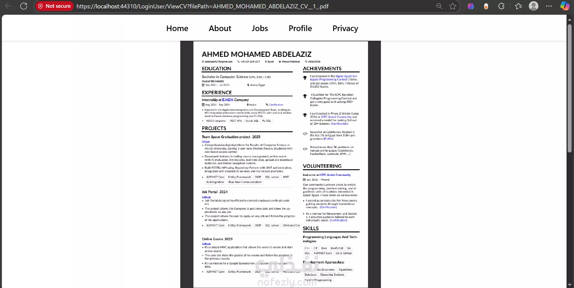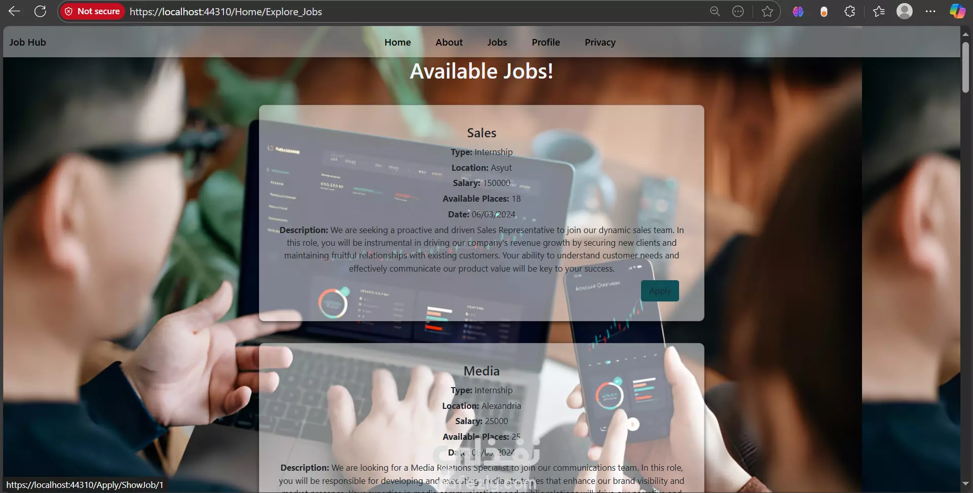 The Job Portal is a web application designed to connect companies and job seekers. Companies can create accounts, post job listings, and manage applications. Job seekers can create profiles, upload their resumes, search for jobs, and apply to the positions that interest them. The platform ensures secure and role-based access, so companies and clients only access their relevant information.