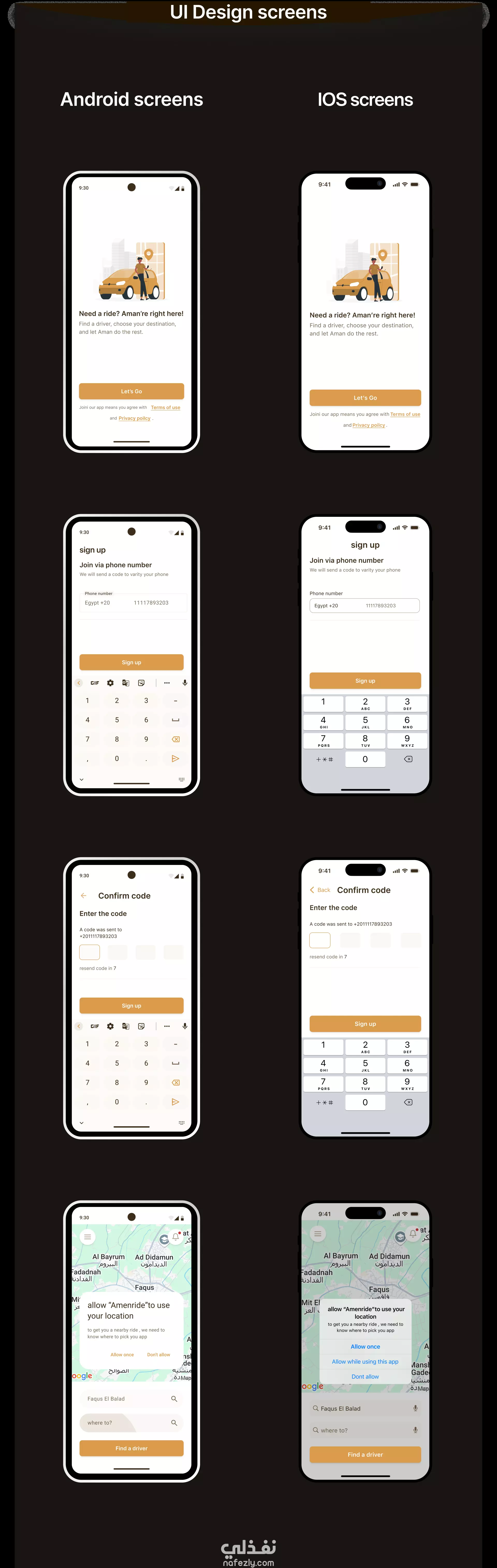 شاشات تطبيق موبايل متجاوبة مع مختلف الأجهزة لسهولة الاستخدام.