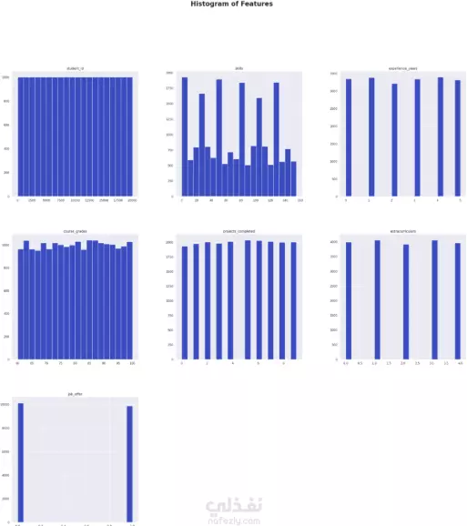 هذا المشروع يركز على تحليل بيانات 20,000 طالب مشارك في معرض توظيف. يحتوي الملف على بيانات متنوعة مثل: المهارات التقنية، عدد سنوات الخبرة، متوسط الدرجات الأكاديمية، المشاريع المنجزة، المشاركة في الأنشطة اللاصفية، إضافةً إلى ما إذا كان الطالب حصل على عرض وظيفي أم لا.