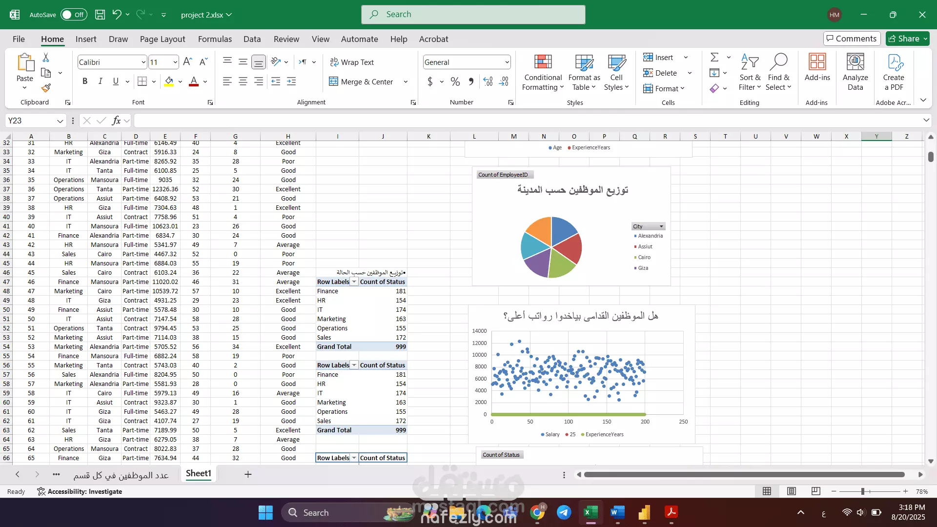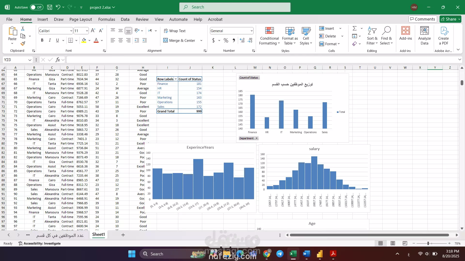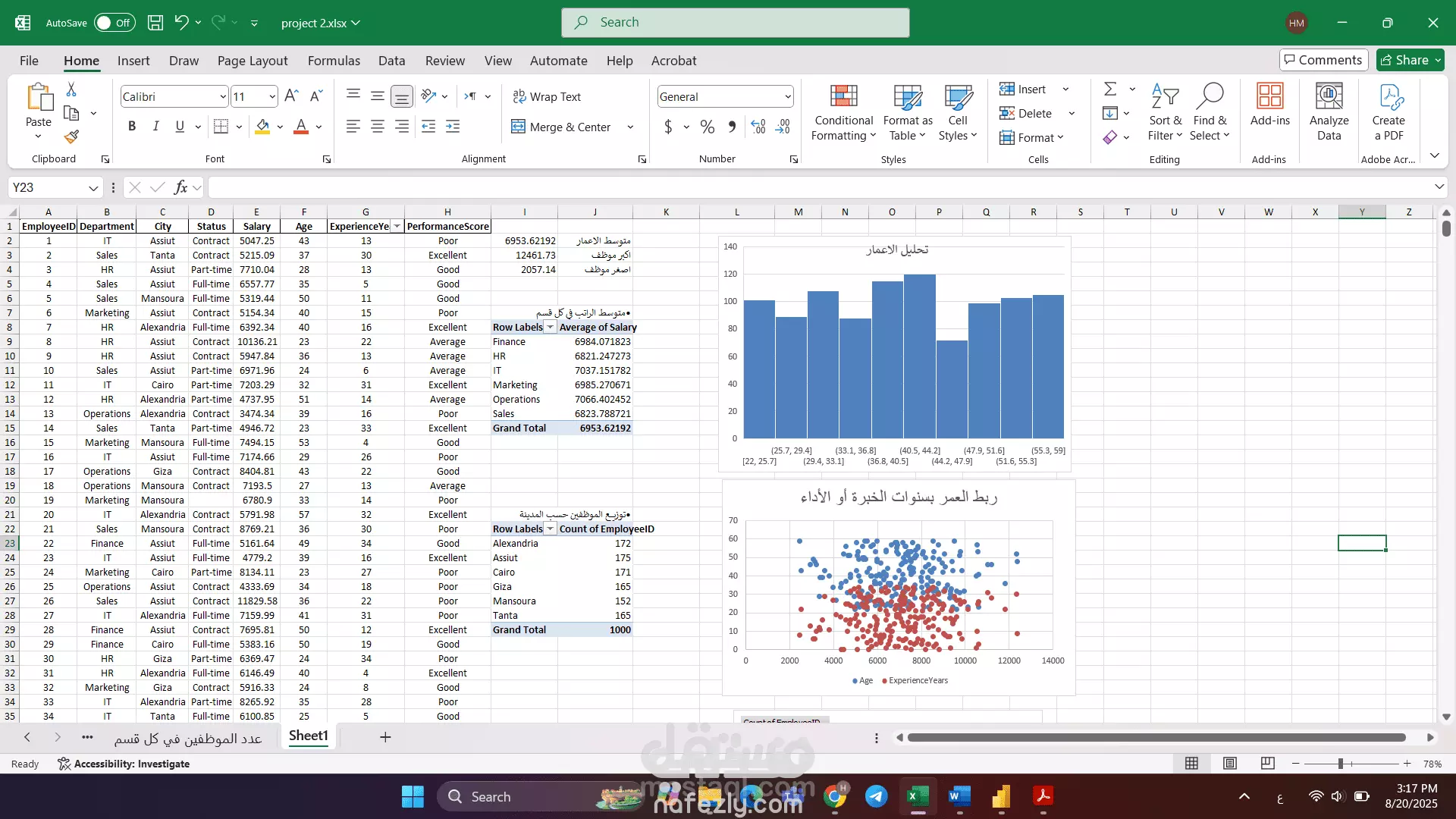 This project focuses on performing Descriptive Statistics and Data Visualization on employee data to extract meaningful HR insights. The analysis covered salary, age, experience years, and performance scores, and was supported with clear visualizations for decision-making. The analysis provided HR managers with a clear overview of workforce demographics and performance, allowing better decision-making in terms of promotions, salary adjustments, and departmental improvements.