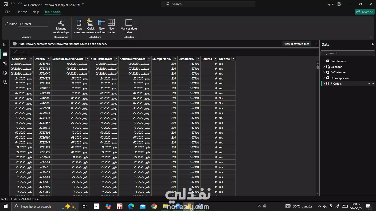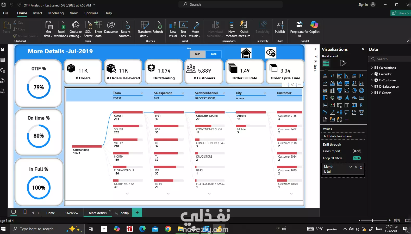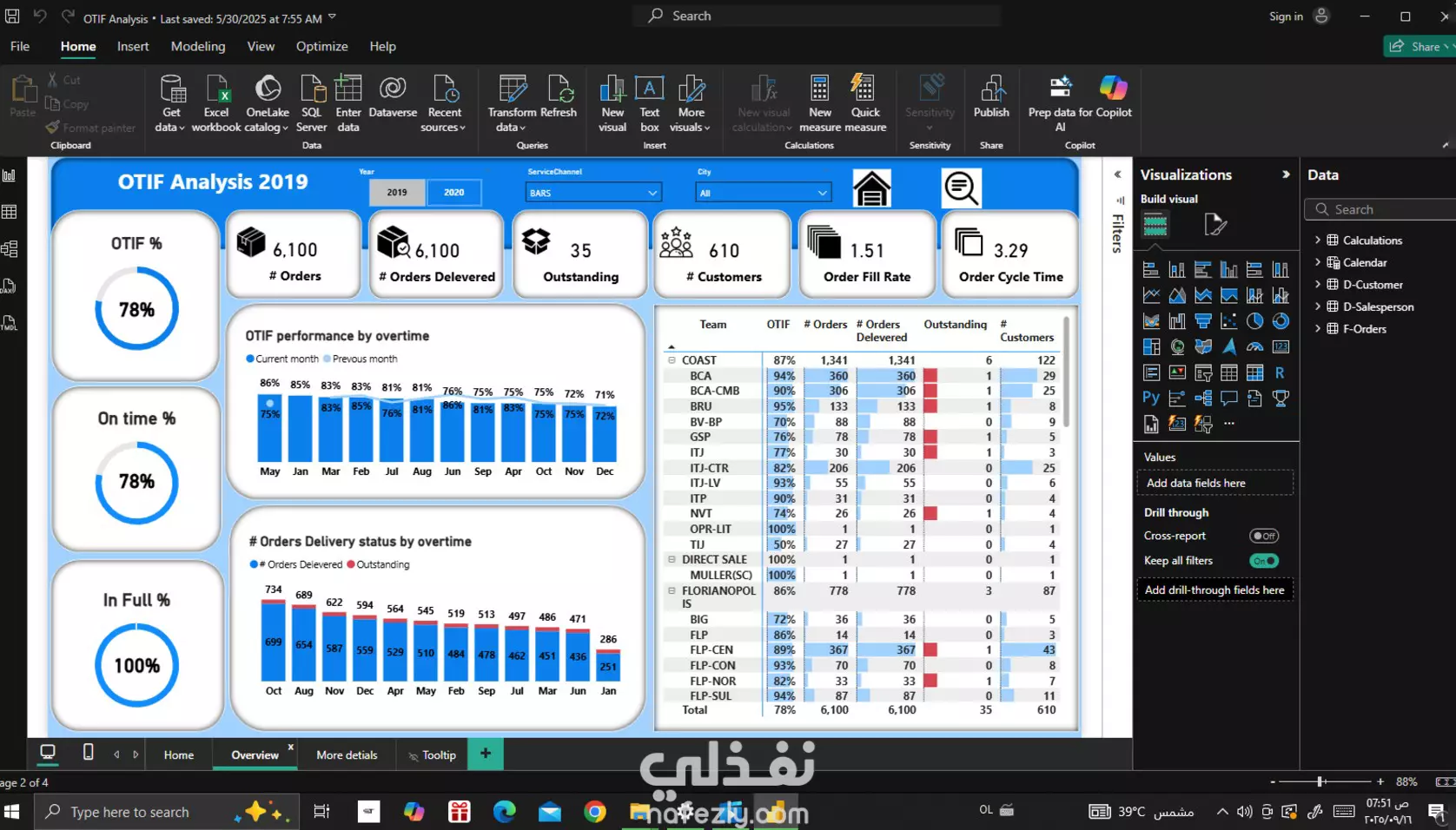 تحليل بيانات OTIF (On Time In Full) هو دراسة أداء سلسلة التوريد وعمليات التسليم من حيث الوفاء بالمواعيد والتسليم الكامل للطلبات، بهدف تحسين رضا العملاء، مراقبة كفاءة الموردين، وتقليل التأخيرات والقصور في سلسلة الإمداد.