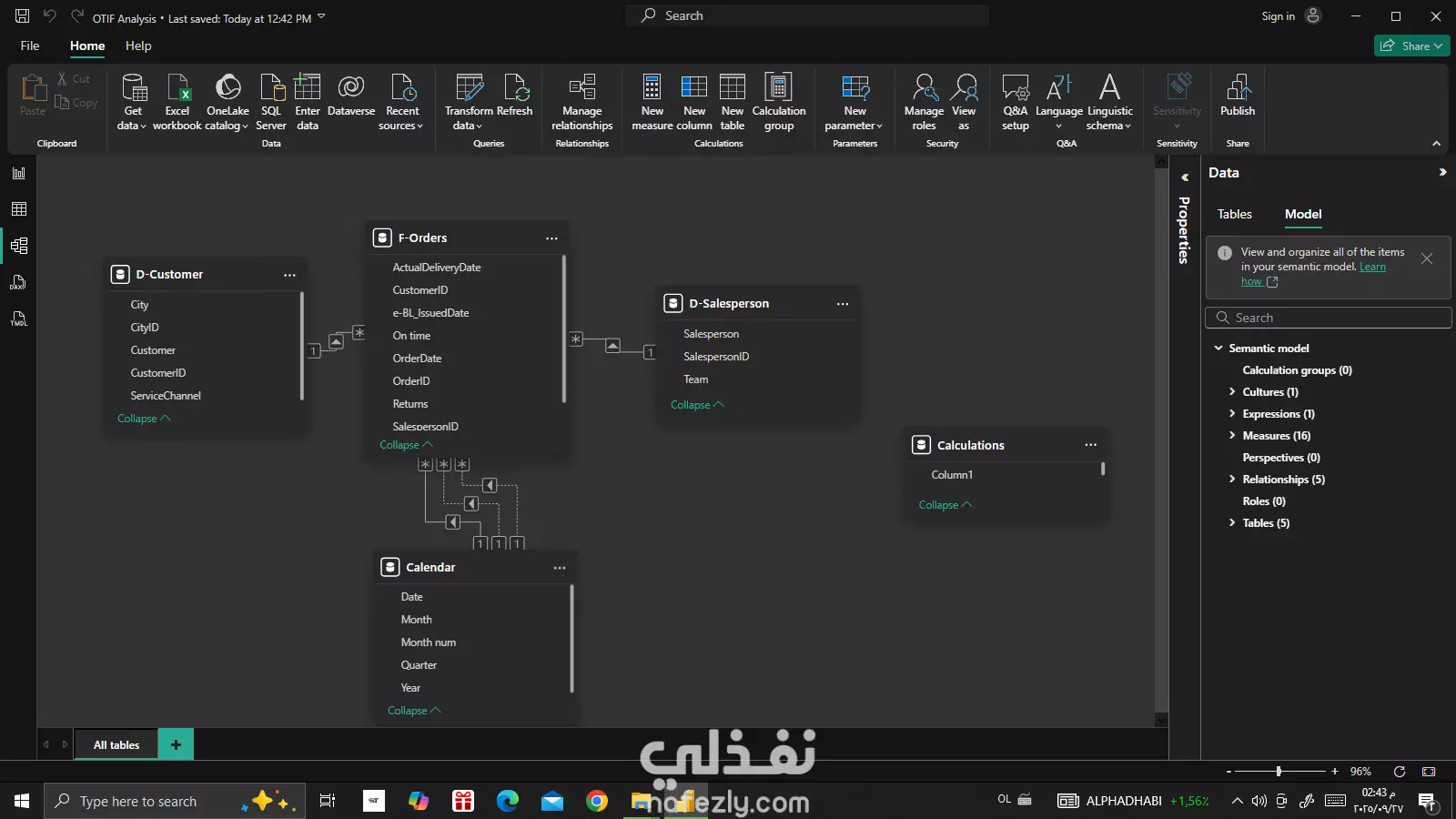 تنظيف ومعالجة البيانات وعمل علاقات بين الجداول لتكون جاهزة للتحليل وحساب مؤشرات الأداء الرئيسية. -