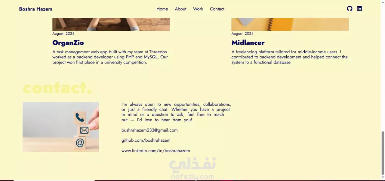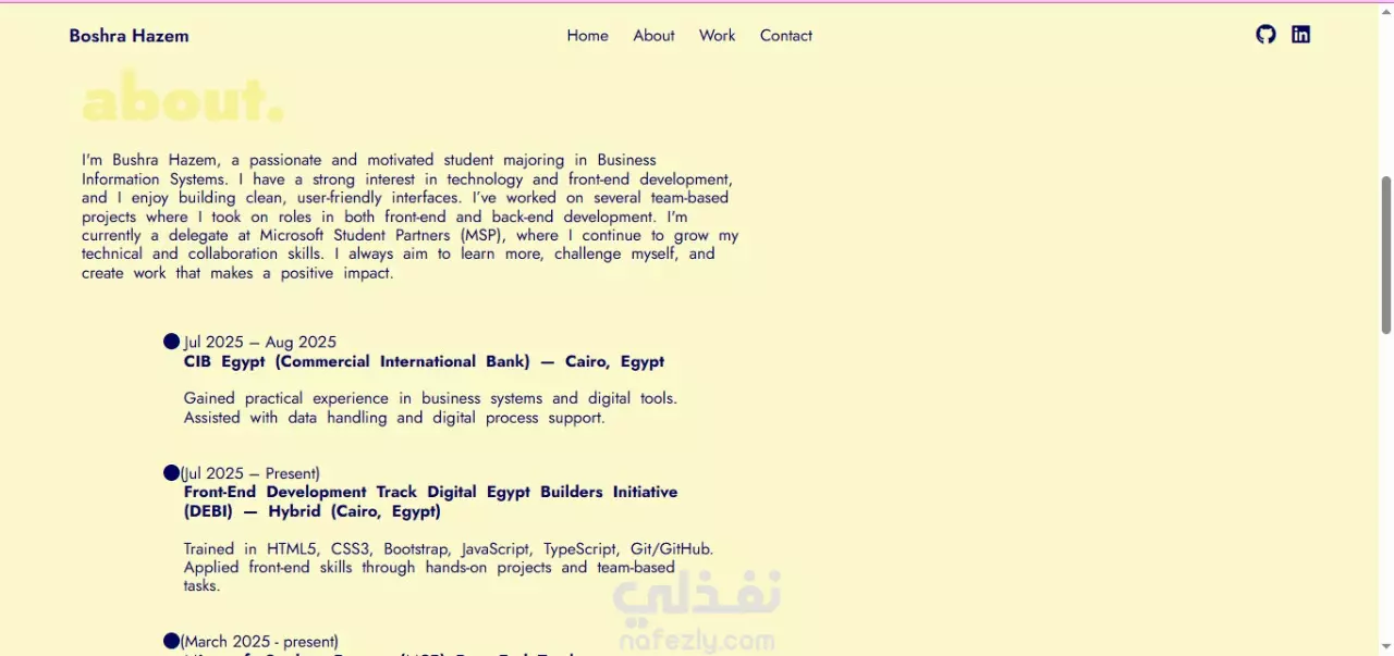 "سأقوم بتصميم وتطوير بورتفوليو شخصي احترافي أو موقع تعريفي باستخدام HTML, CSS بشكل متجاوب يعمل على جميع الأجهزة (كمبيوتر، موبايل، تابلت).