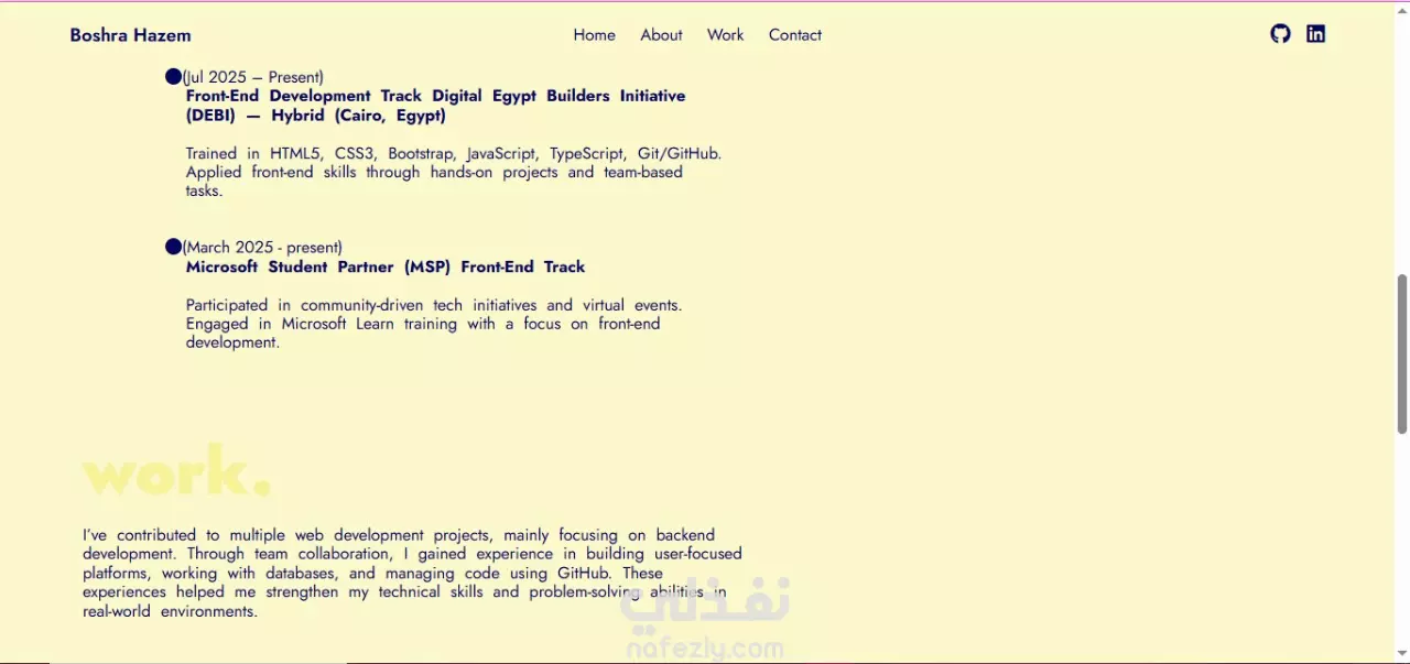 أقسام لعرض المعلومات الشخصية أو الأعمال السابقة.