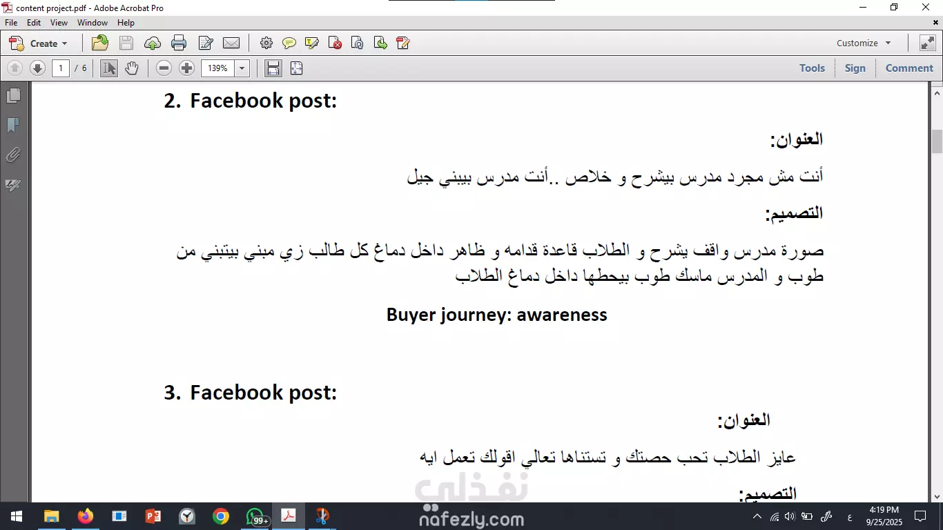 قدّمت نموذجًا لكتابة محتوى إبداعي لمنصات التواصل الاجتماعي بهدف جذب انتباه الجمهور وزيادة التفاعل. ركزت على كتابة منشورات (Captions) بسيطة وجذابة تتناسب مع هوية العلامة التجارية ورسالتها، وتساعد في تحقيق أهداف التسويق (مثل زيادة التفاعل أو التعريف بالخدمة).