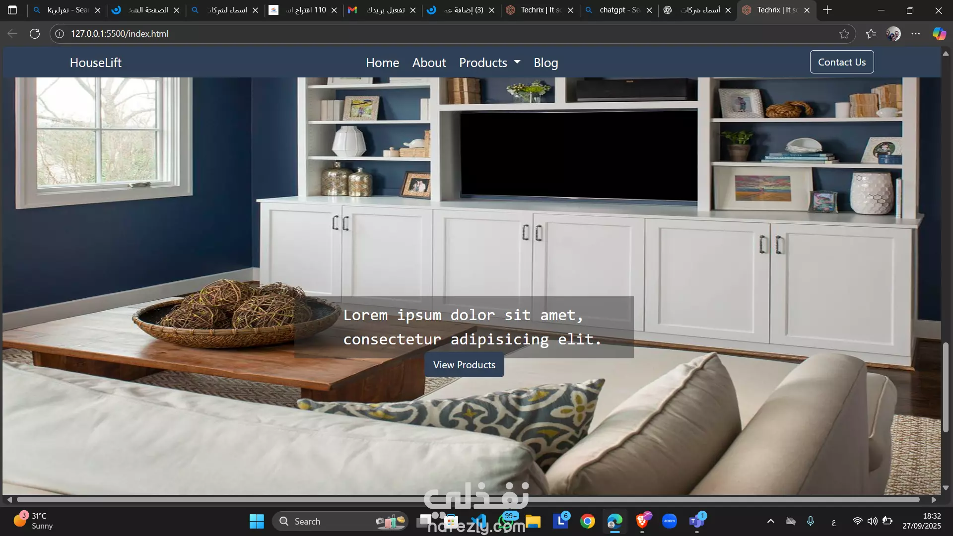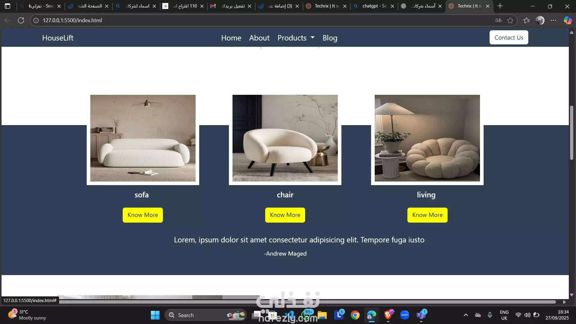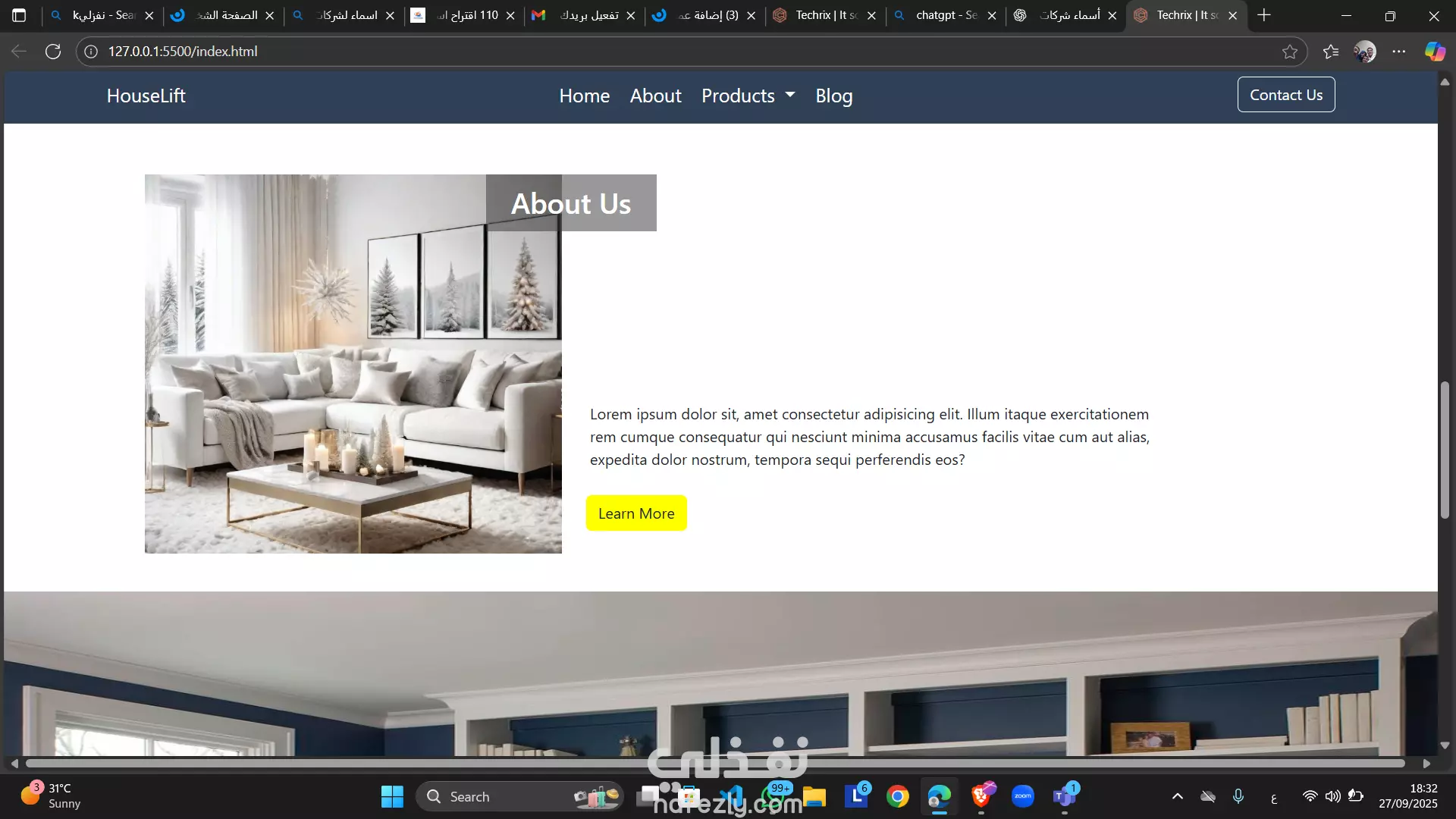 وجهة اماميل لموقع اثاث باستخدام css html bootstrape
