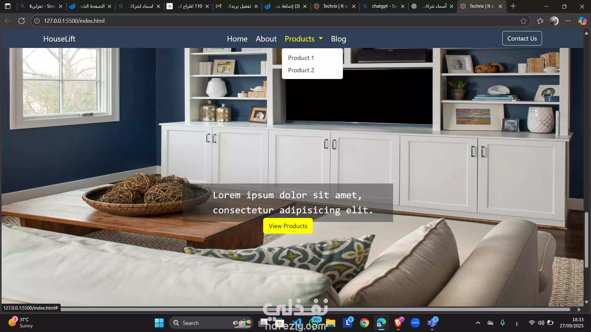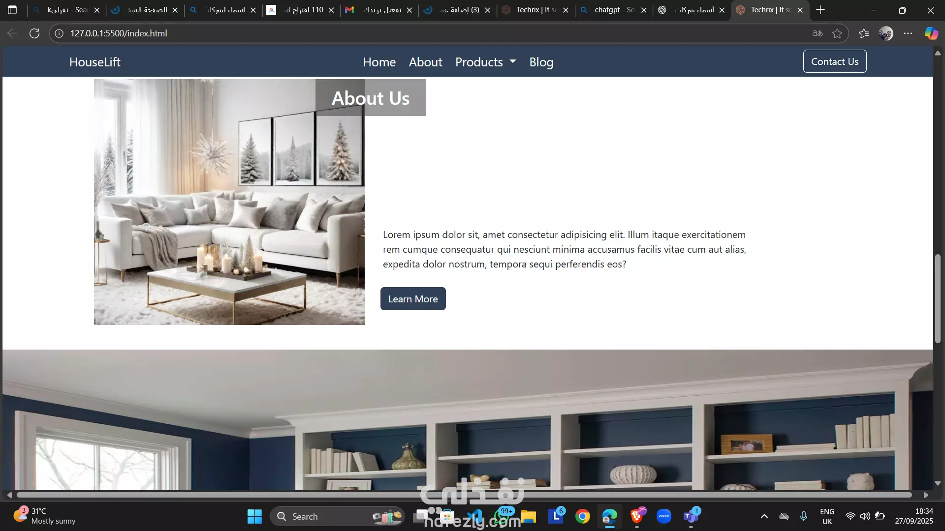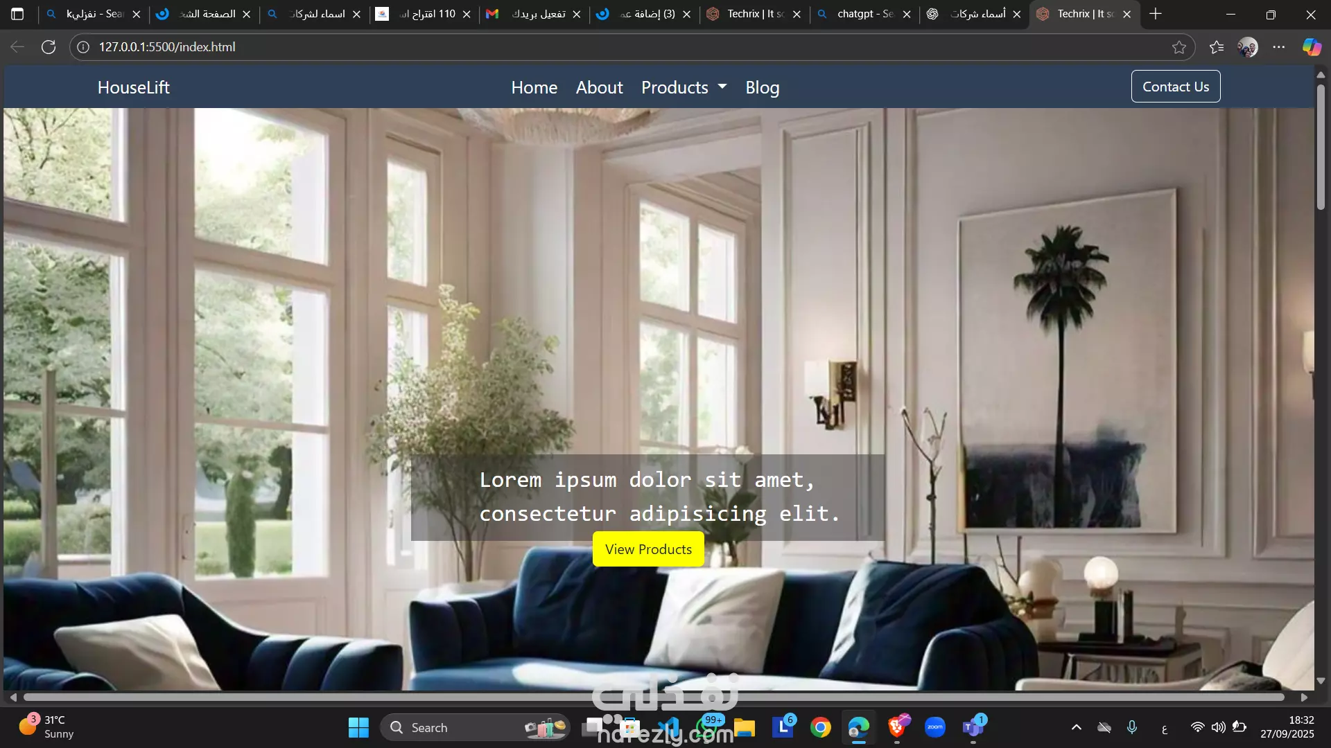 وجهة اماميل لموقع اثاث باستخدام css html bootstrape
