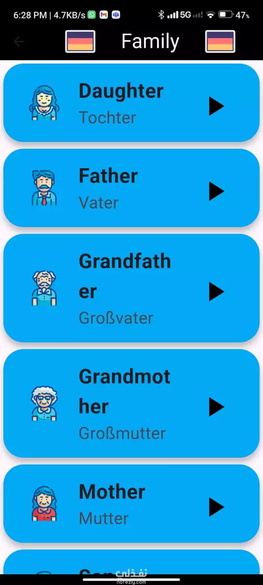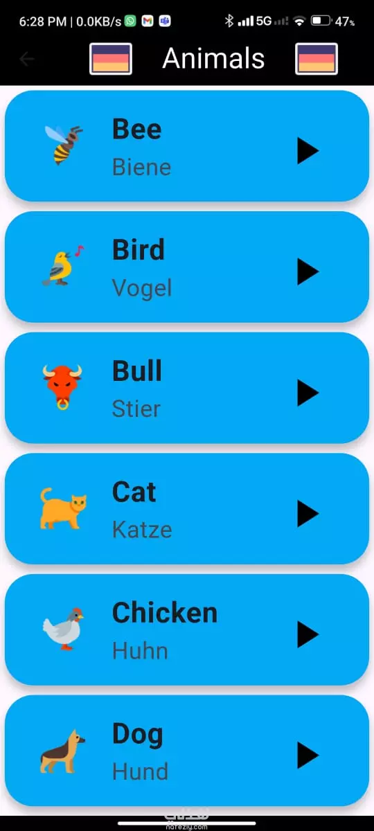 📱 تطبيق تعليمي لتعلّم اللغة الألمانية قمت بتطوير تطبيق موبايل باستخدام Flutter يهدف إلى مساعدة المبتدئين على تعلم أساسيات اللغة الألمانية بطريقة بسيطة وسهلة. 🔹 محتوى التطبيق: الأرقام مكتوبة بالإنجليزية مع النطق الصحيح بالألمانية. أسماء الطعام والأكلات الشائعة. مفردات عن الأبناء، الأجداد، والأقارب. أسماء الحيوانات والألوان. 🔹 مميزات التطبيق: واجهة استخدام سهلة وبسيطة مناسبة لجميع الأعمار. صوت ناطق بالألمانية لكل كلمة لمساعدة المستخدم على النطق الصحيح. تصميم جذاب يسهّل عملية التعلم. 🎯 الهدف من التطبيق هو جعل تعلم اللغة الألمانية ممتعًا وسهل الوصول للجميع من خلال الجمع بين الكلمة المكتوبة والنطق الصوتي.