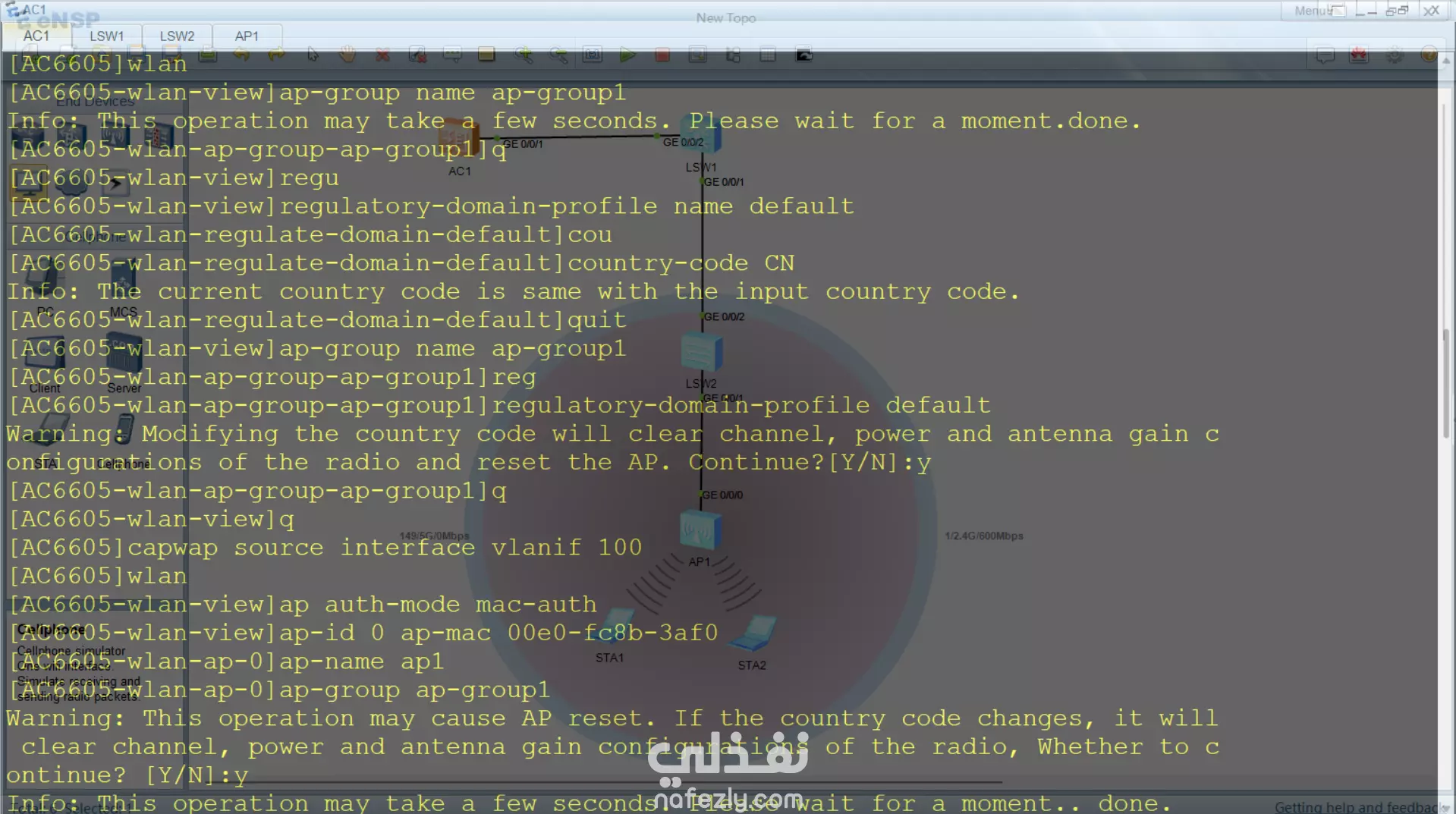 Created and applied WLAN profiles (SSID, security, and VLAN binding) through the AC.