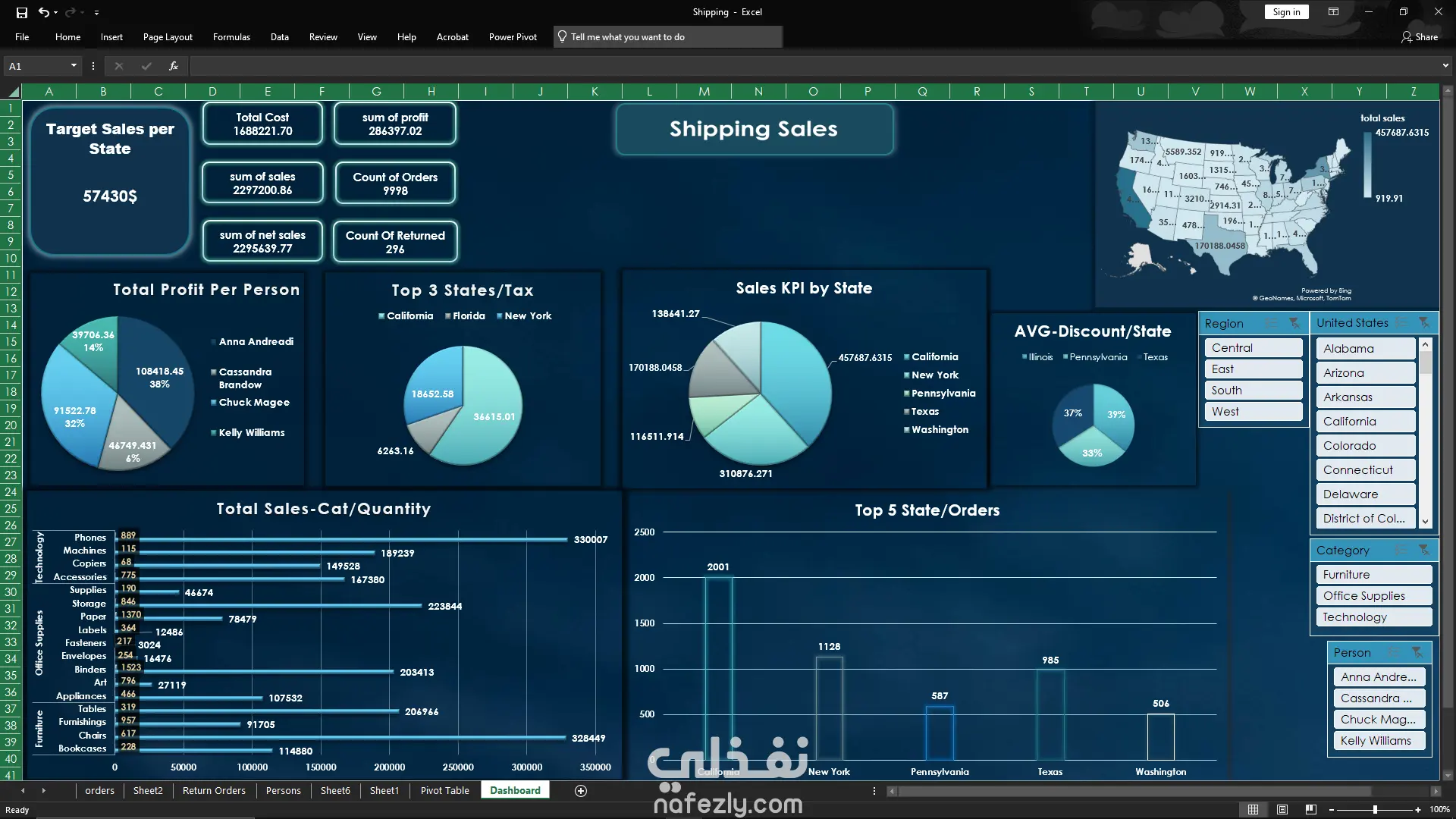 إعداد جداول محورية (Pivot Tables) لعرض ملخصات دقيقة.