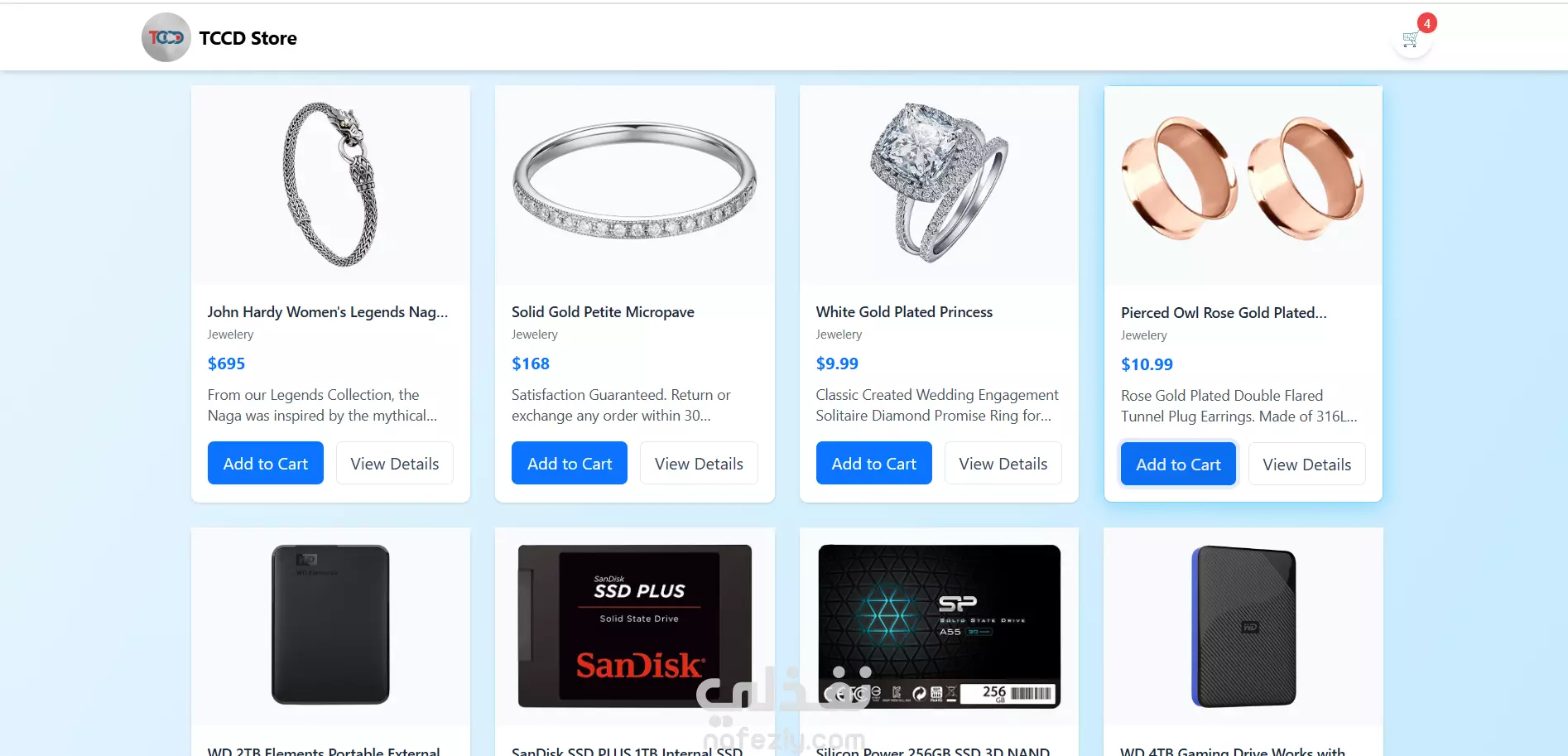 قمت بتطوير متجر إلكتروني حديث باستخدام React و Tailwind CSS لتقديم تجربة تسوق سلسة وسريعة.