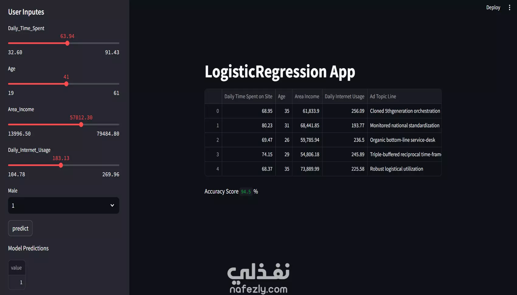 تطوير نماذج تعلم الآلة والذكاء الاصطناعي مع واجهه تفاعليه بسيطه