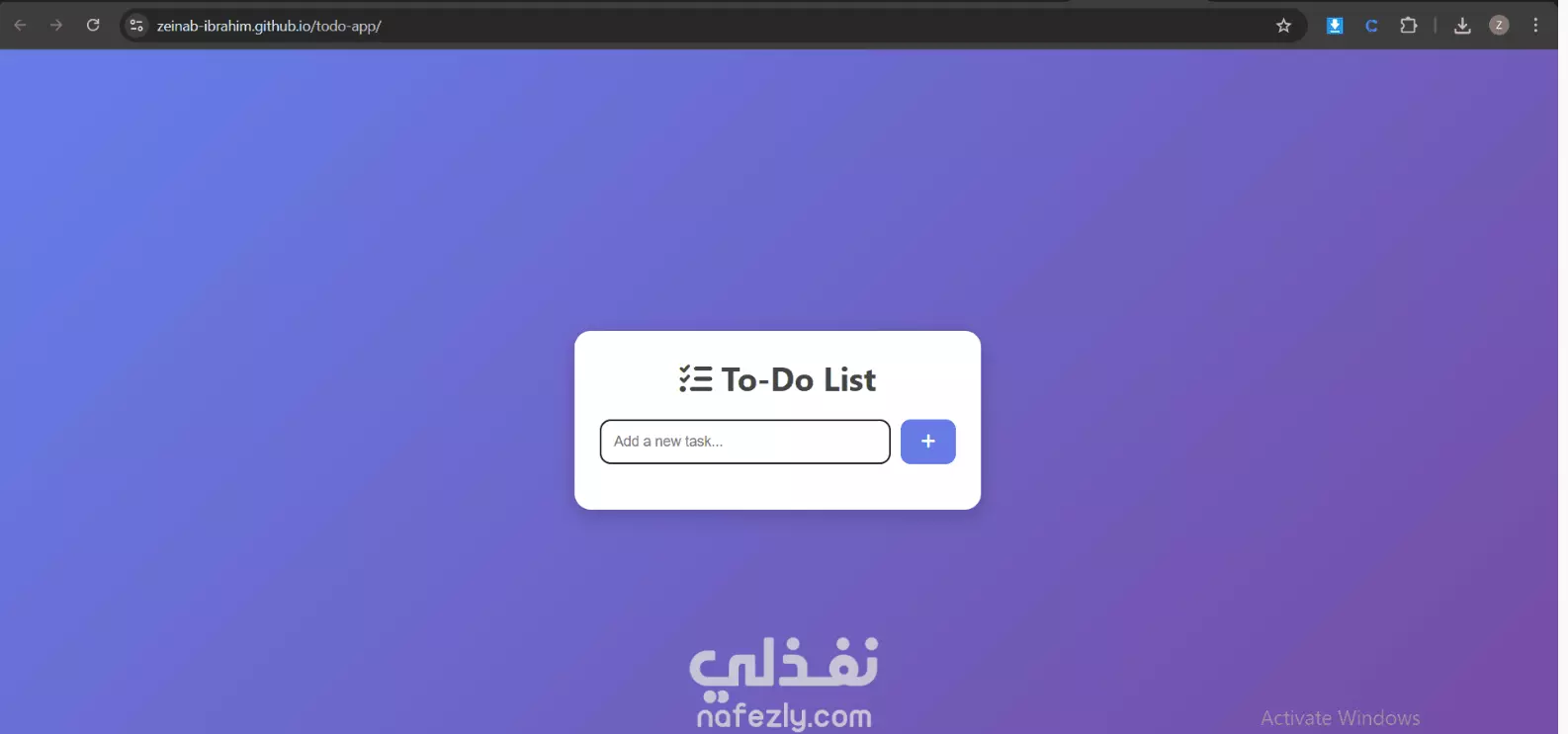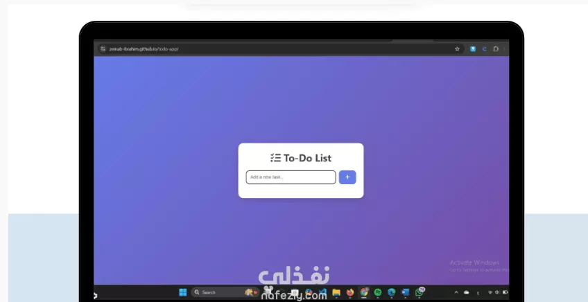 تطبيق ويب بسيط لإدارة المهام اليومية المميزات: إضافة وحذف المهام تحديد المهام المكتملة تخزين المهام باستخدام Local Storage تصميم متجاوب يعمل على جميع الأجهزة