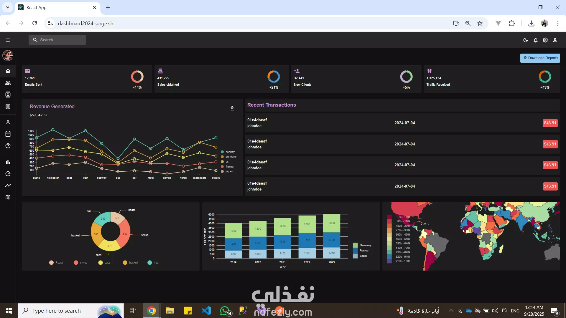 قمت بتصميم وتطوير لوحة تحكم Dashboard متكاملة تتيح عرض البيانات بطريقة مرئية سهلة الفهم وتفاعلية، مع التركيز على تحسين تجربة المستخدم وسهولة الوصول للمعلومات. ? مكونات المشروع الأساسية: رسوم بيانية تفاعلية باستخدام Nivo (Bar, Pie, Line, Choropleth) لعرض الإحصائيات وتحليل البيانات. جدول بيانات DataGrid لعرض وإدارة البيانات بسهولة مع أدوات فلترة وتعديل مدمجة. تقويم FullCalendar لعرض الأحداث والمواعيد بشكل منظم شهريًا وأسبوعيًا، مع إمكانية التفاعل والإضافة المباشرة. نماذج ديناميكية باستخدام React Hook Form لتسهيل إدخال وتعديل البيانات. تصميم عصري ومتجاوب باستخدام MUI وCSS، يضمن عرضًا مثاليًا على مختلف الأجهزة. المشروع يركز على تقديم واجهة بصرية احترافية ومبسطة تسهّل عملية اتخاذ القرار وتحليل الأداء في أي نظام إداري أو تجاري.