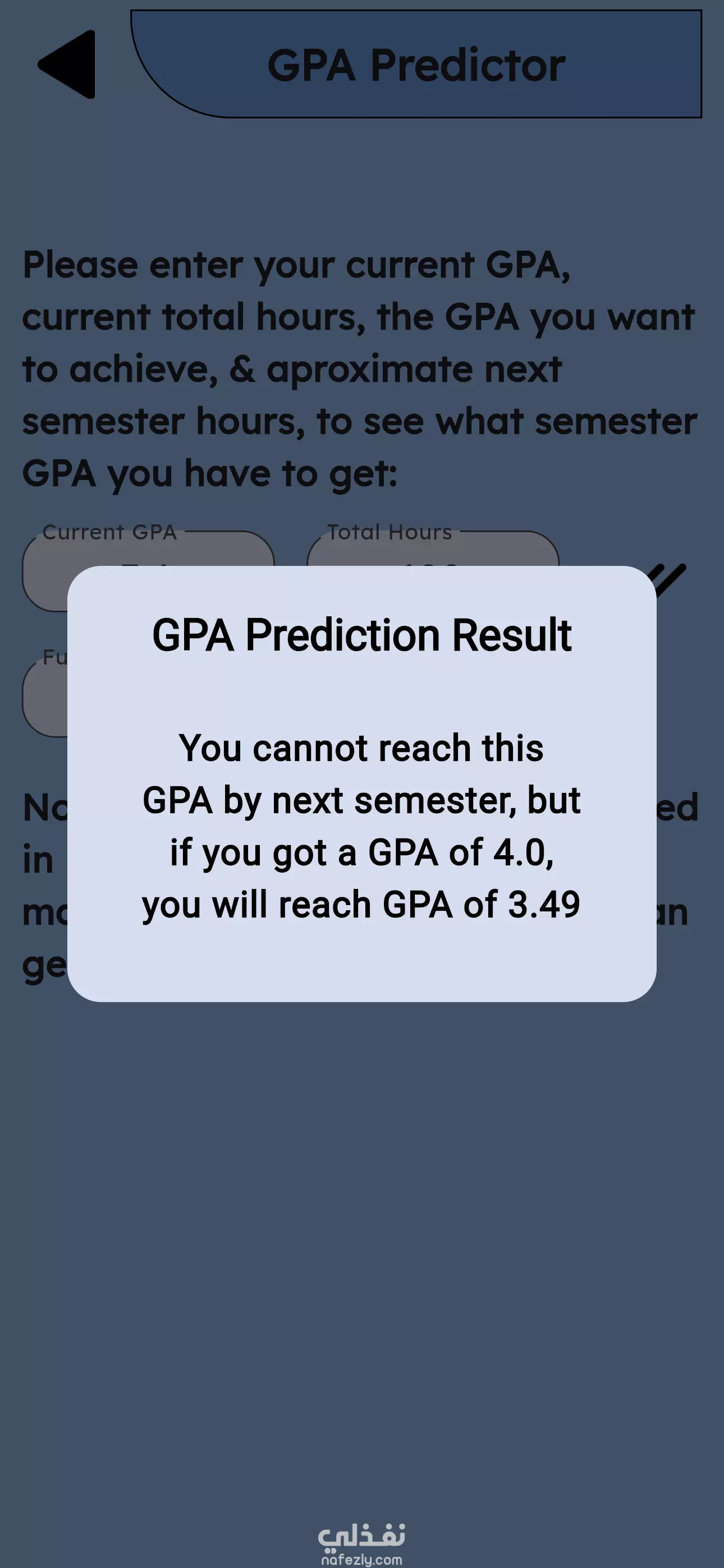 تطبيق حاسبة ومتنبئ المعدل التراكمي