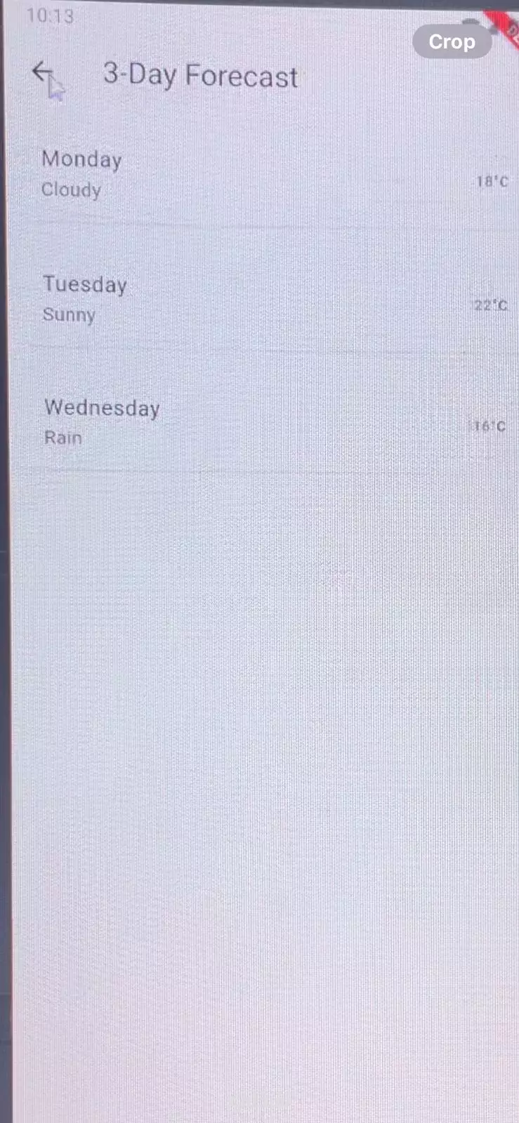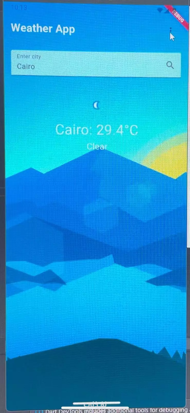 mobile application developed using Flutter with a clean and user-friendly interface. It provides real-time weather updates by integrating with a reliable weather API, ensuring accurate forecasts and data.